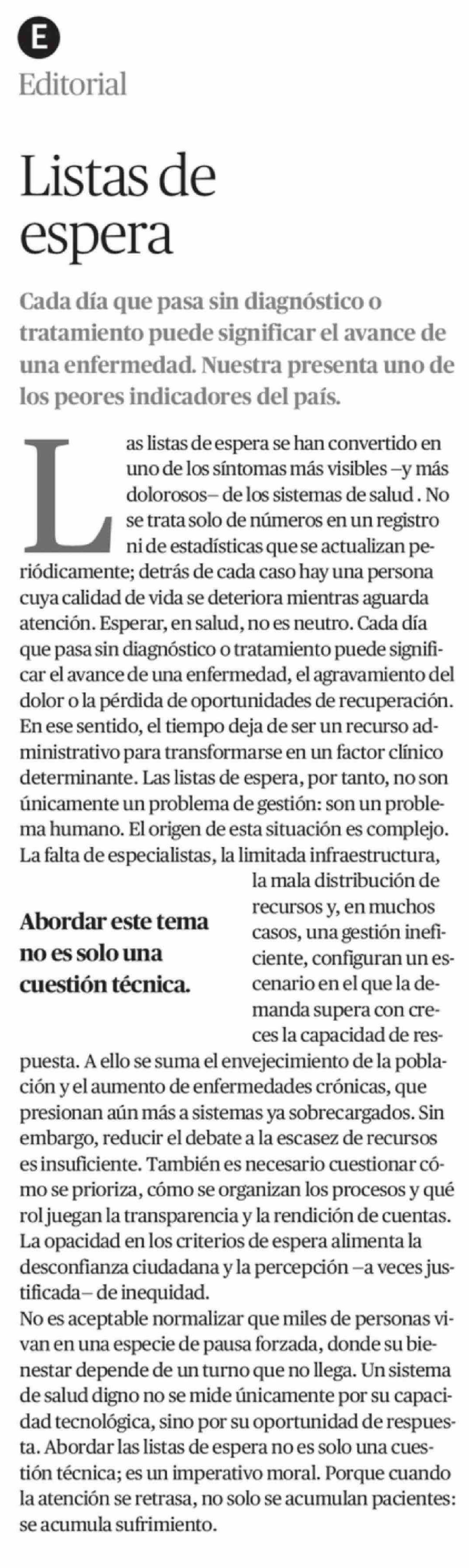 Editorial: Listas de espera 03-04-2026 El Mercurio de Antofagasta |