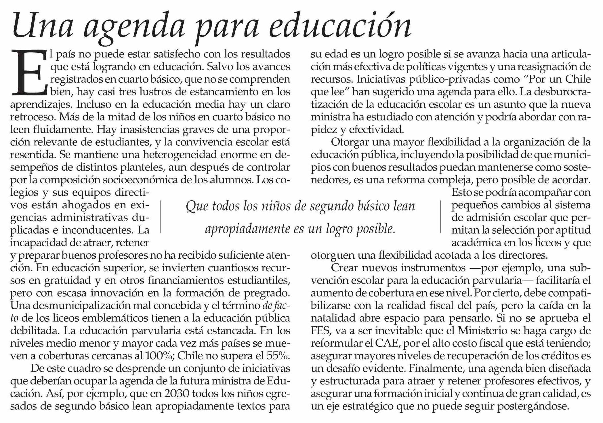 Título: Editorial: Una agenda para educación