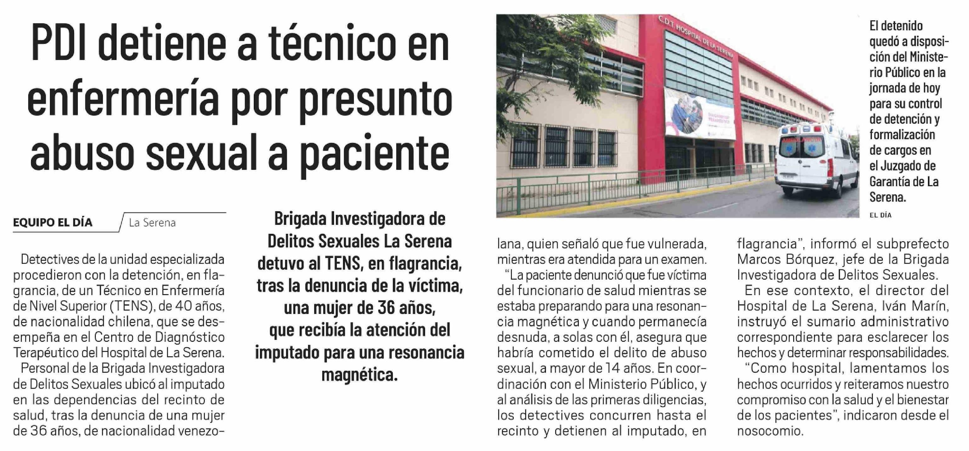 Título: PDI detiene a técnico en enfermería por presunto abuso sexual a paciente