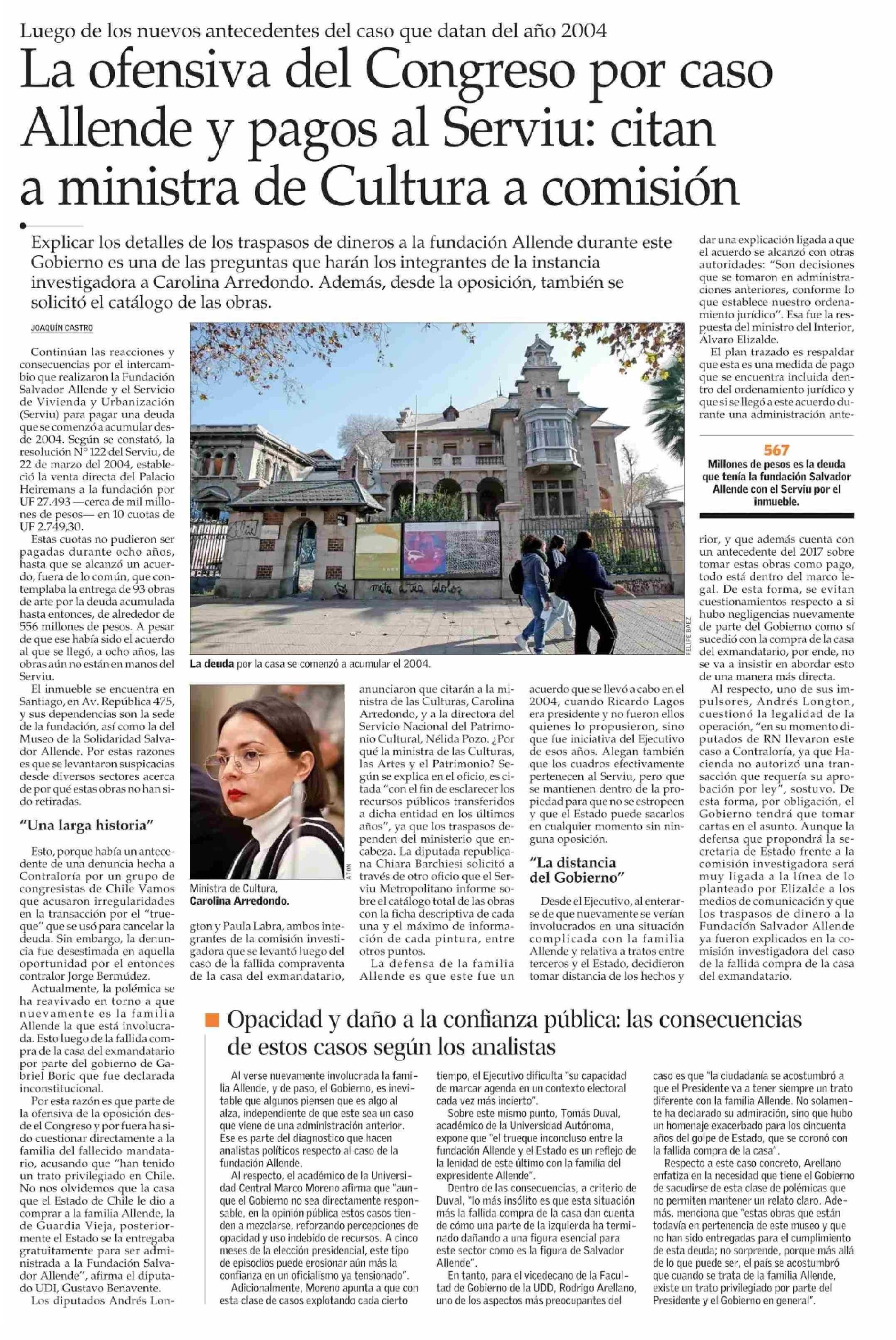 La ofensiva del Congreso por caso Allende y pagos al Serviu: citan a ministra de Cultura a comisión 08-06-2025 El Mercurio |
