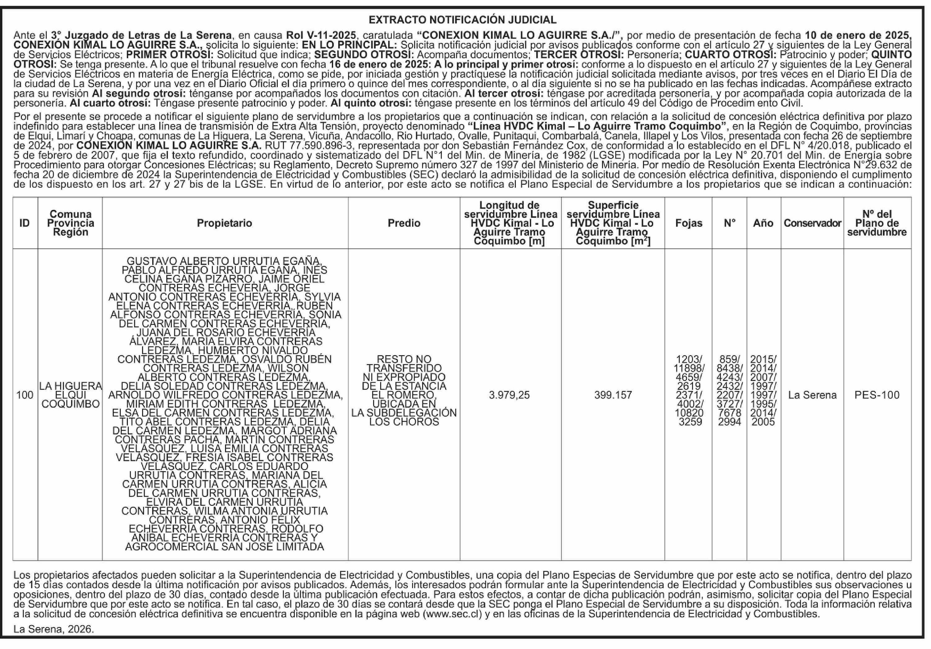 EXTRACTO NOTIFICACIÓN JUDICIAL 15-04-2026 El Día |