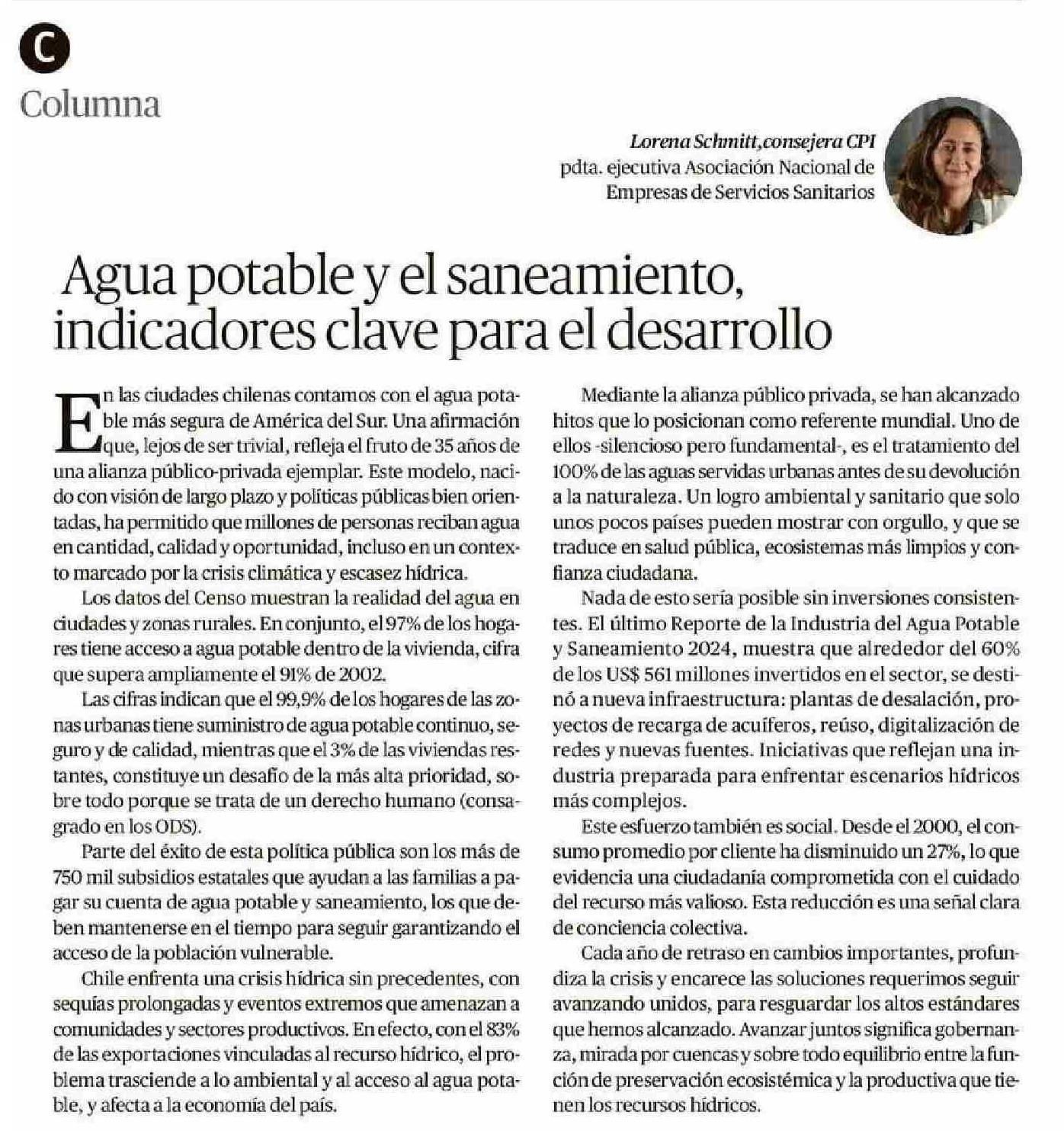 COLUMNAS DE OPINIÓN: Agua potable y el saneamiento, indicadores clave para el desarrollo 22-06-2025 Crónica de Chillán |