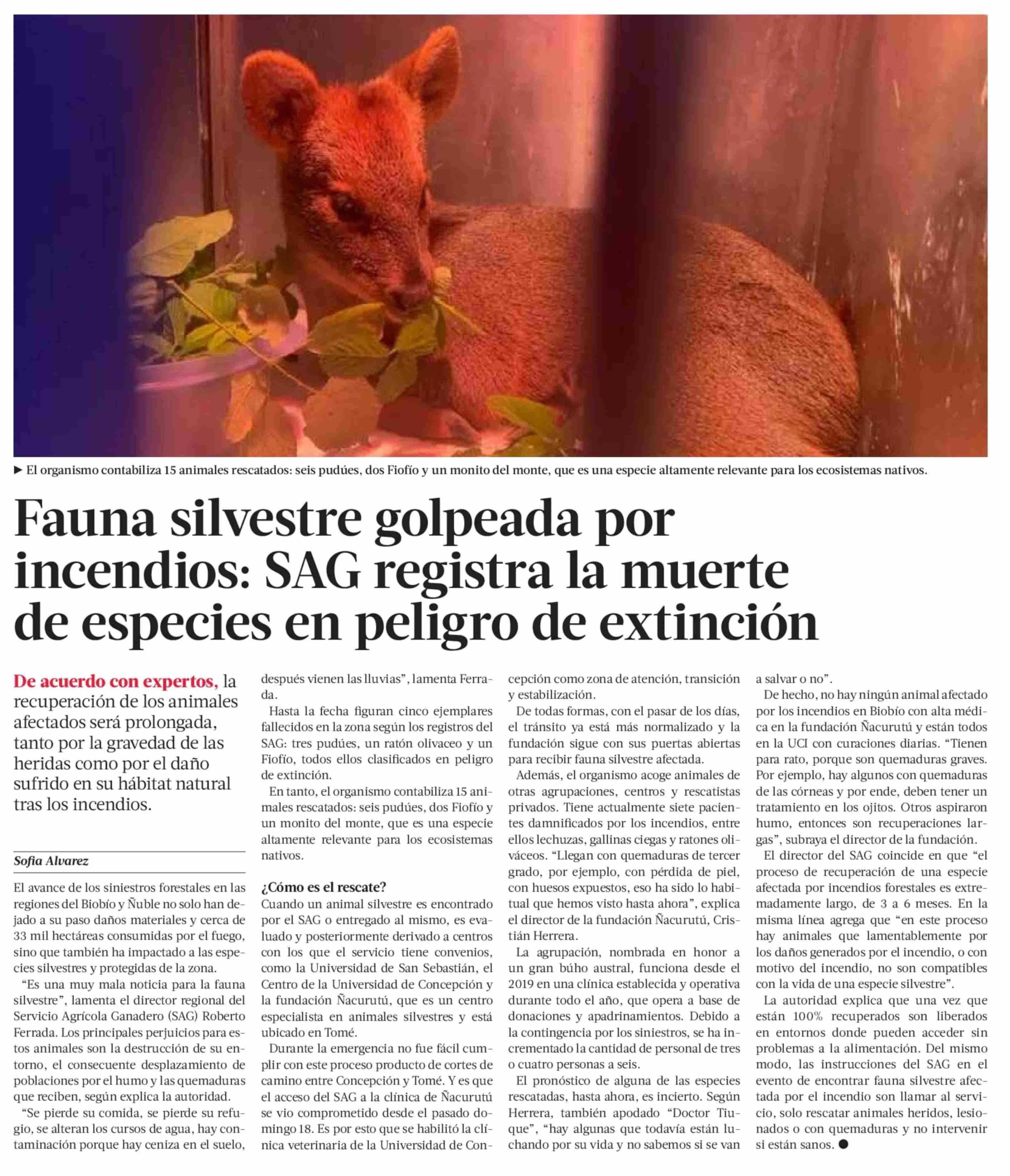 Título: Fauna silvestre golpeada por incendios: SAG registra la muerte de especies en peligro de extinción
