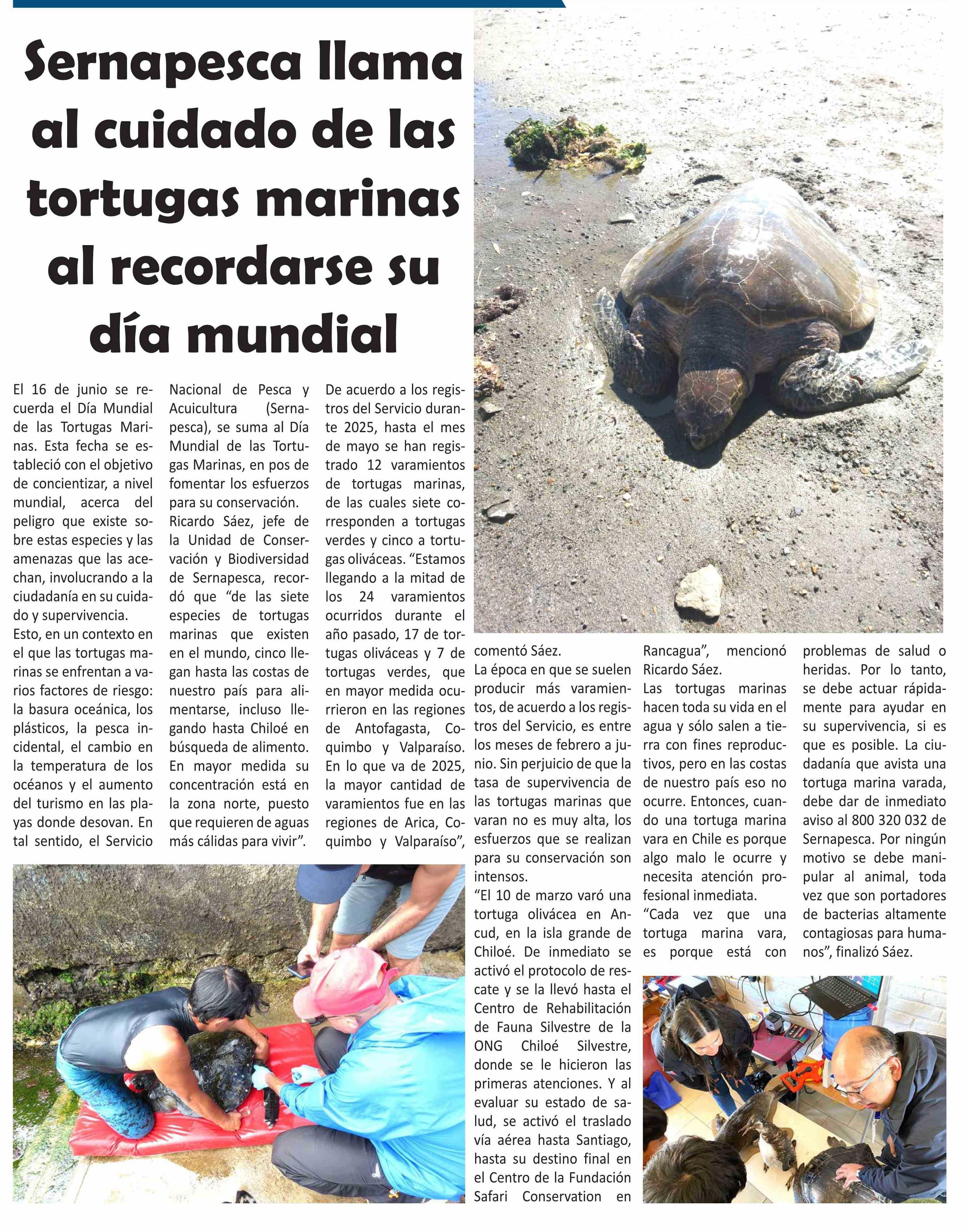 Sernapesca llama al cuidado de las tortugas marinas al recordarse su día mundial 17-06-2025 El Longino |