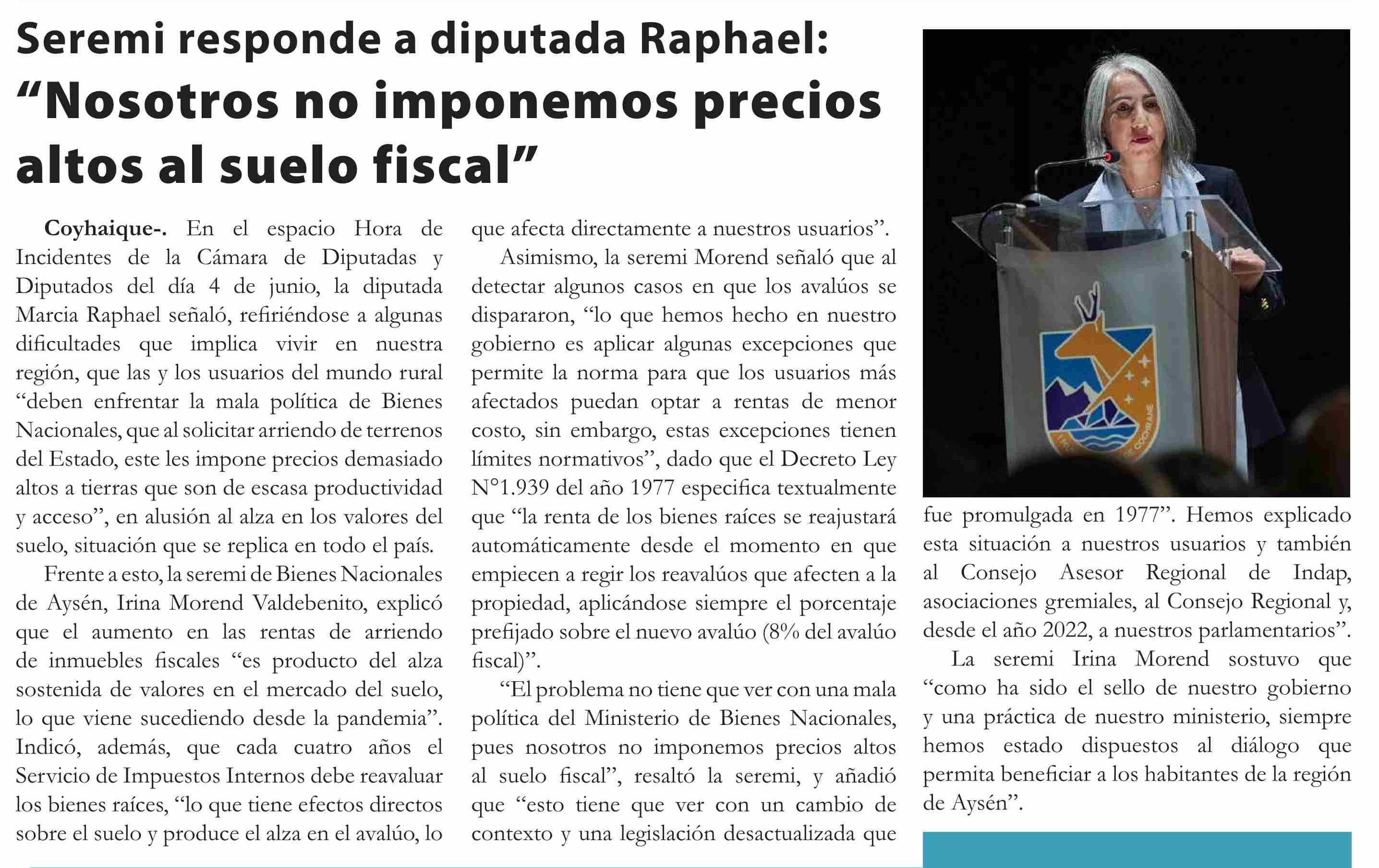 Título: Seremi responde a diputada Raphael: “Nosotros no imponemos precios altos al suelo fiscal”