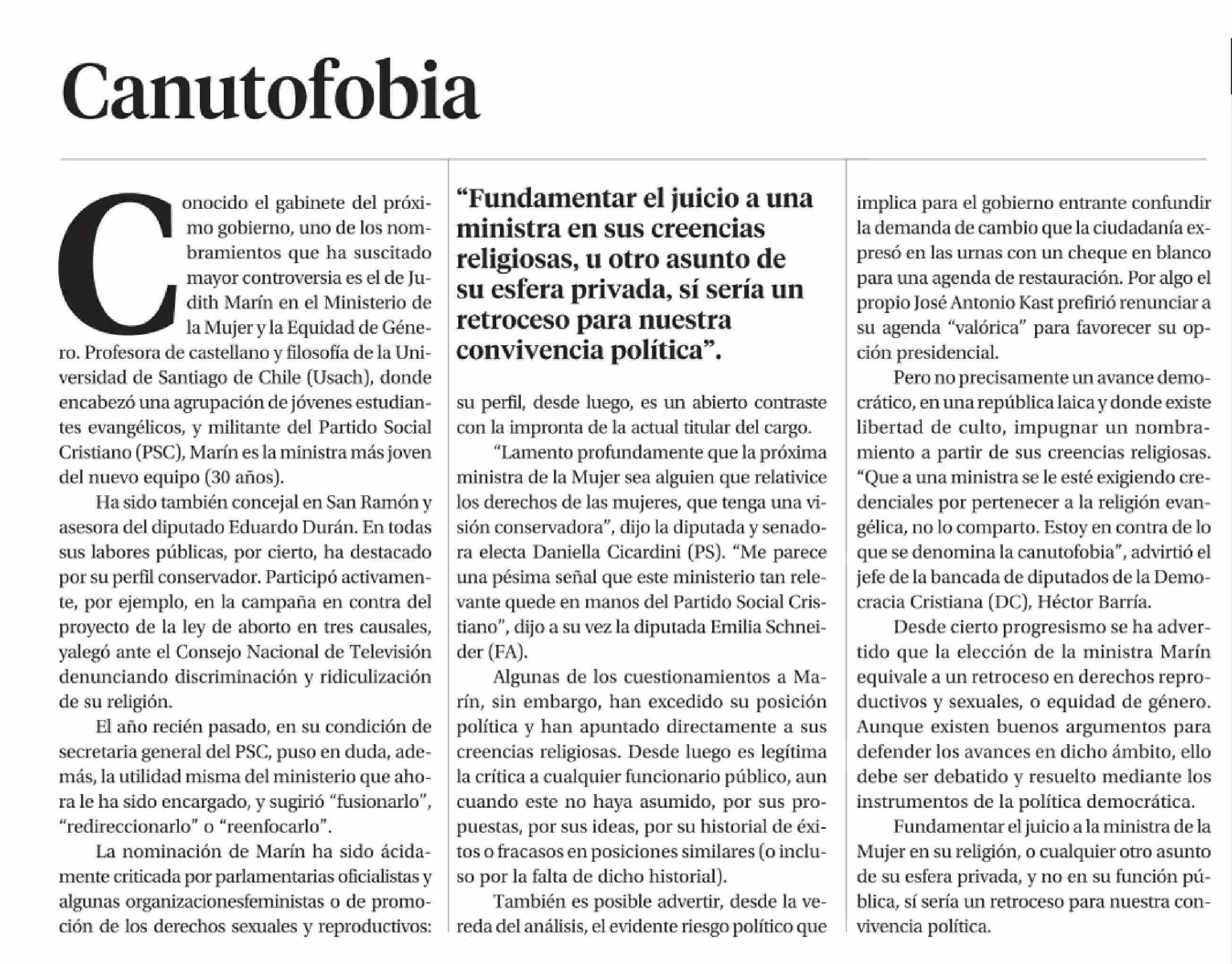 EDITORIAL: Canutofobia 22-01-2026 La Segunda |