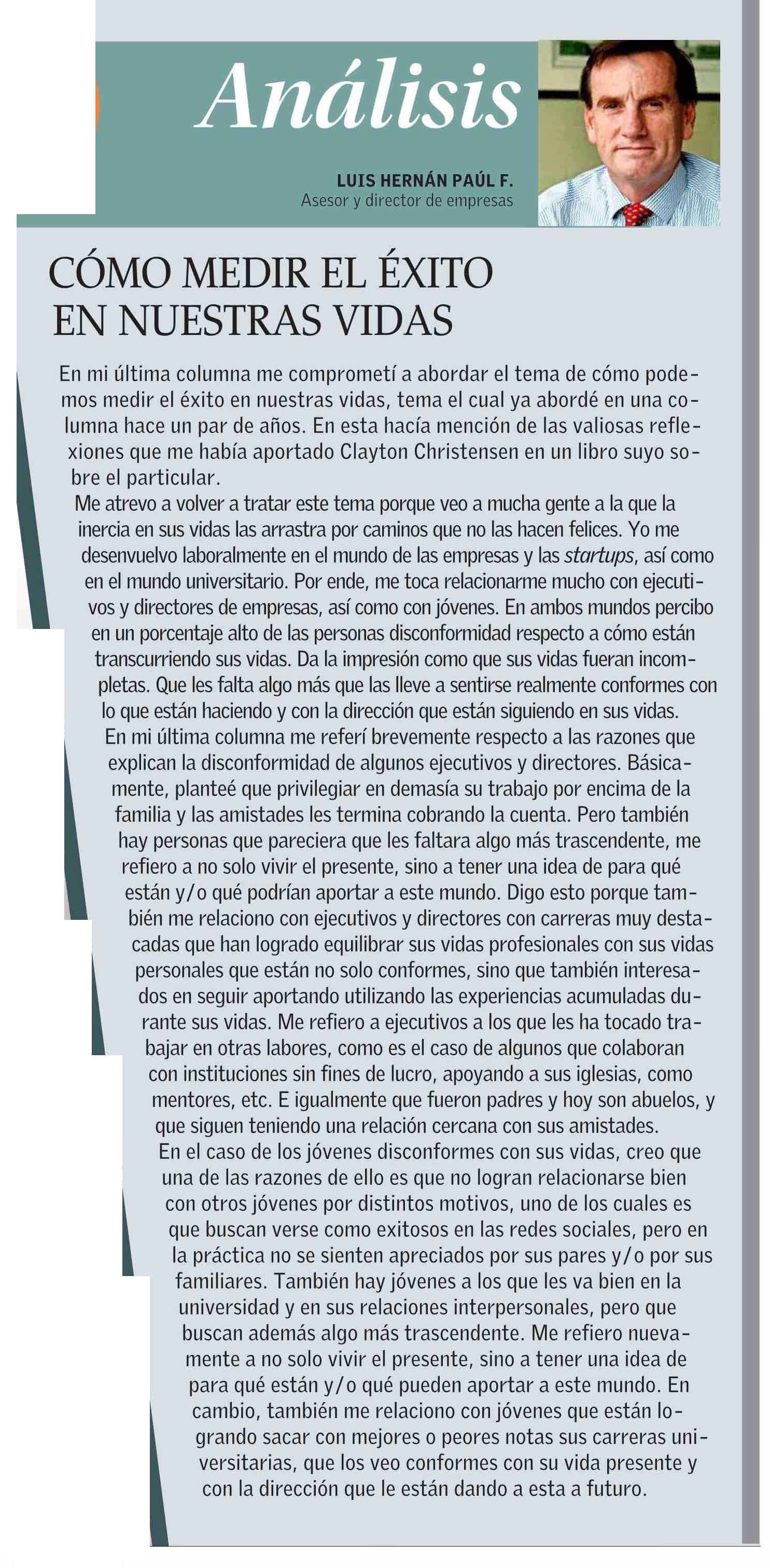CÓMO MEDIR EL ÉXITO EN NUESTRAS VIDAS 09-07-2025 El Mercurio |