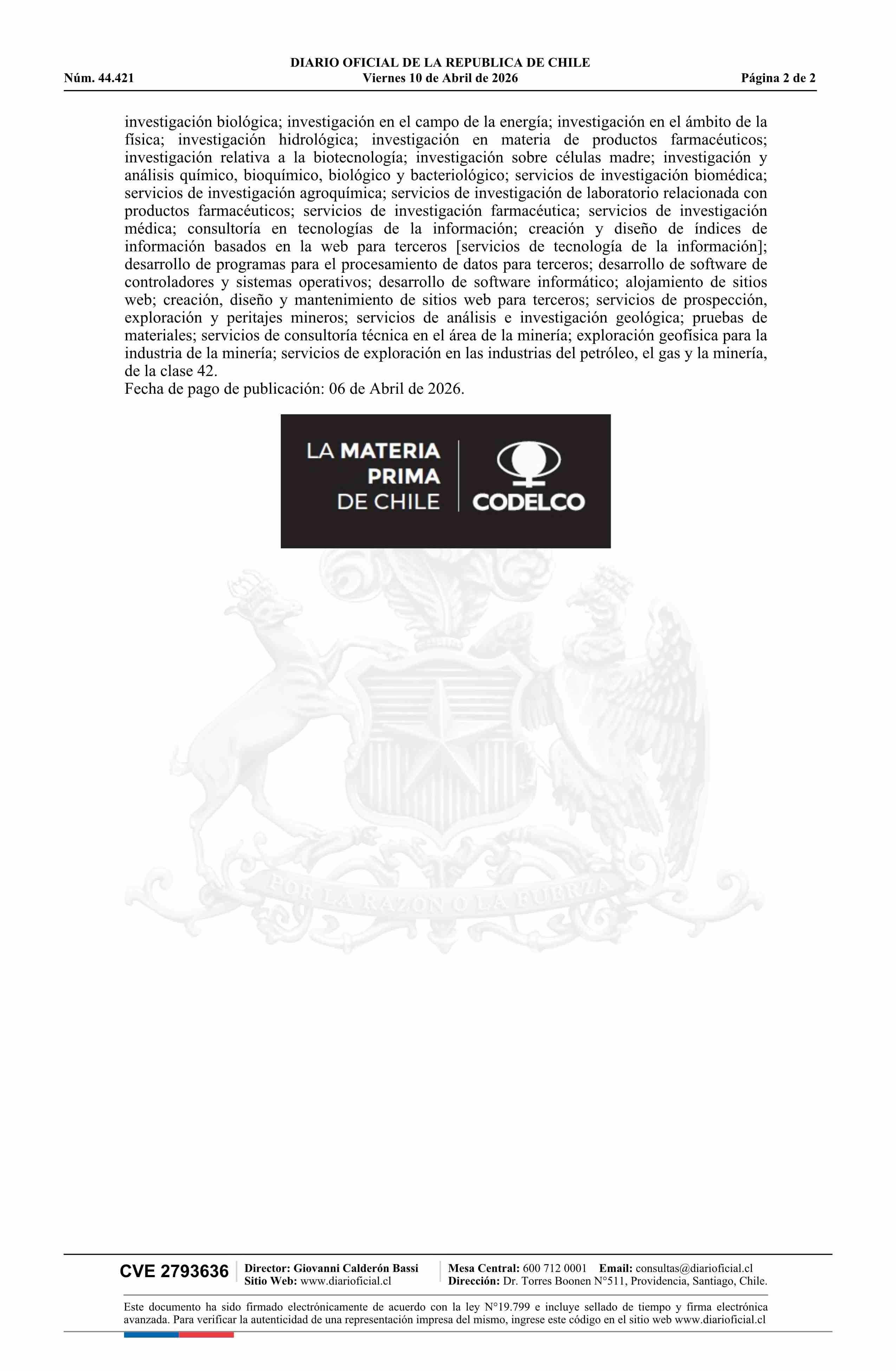 Solicitud número 1652556.- CODELCO La materia prima de Chile 10-04-2026 Diario Oficial Edición Electrónica |