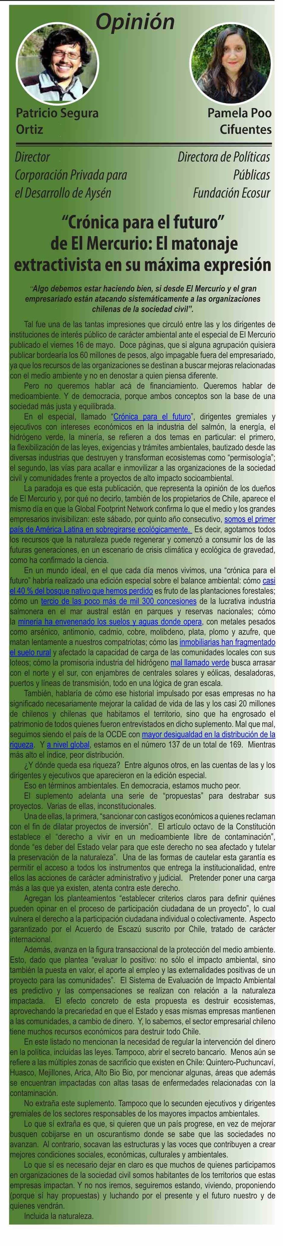| Título: | “Crónica para el futuro” de El Mercurio: El matonaje extractivista en su máxima expresión |