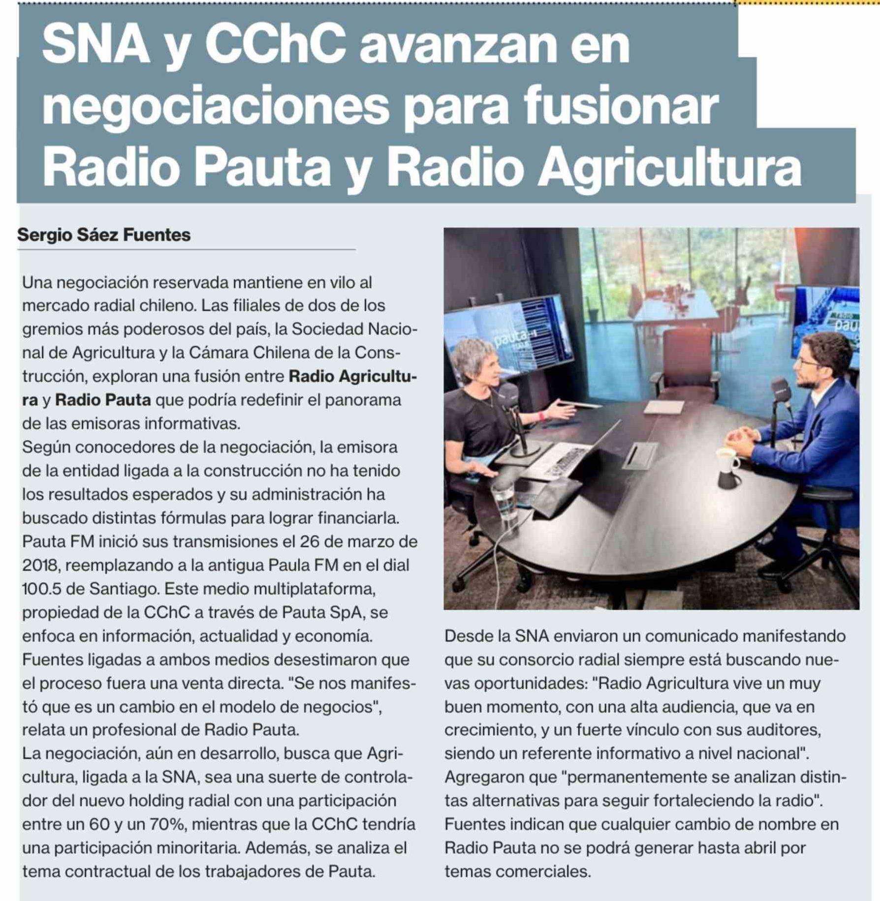 Título: SNA y CChC avanzan en negociaciones para fusionar Radio Pauta y Radio Agricultura
