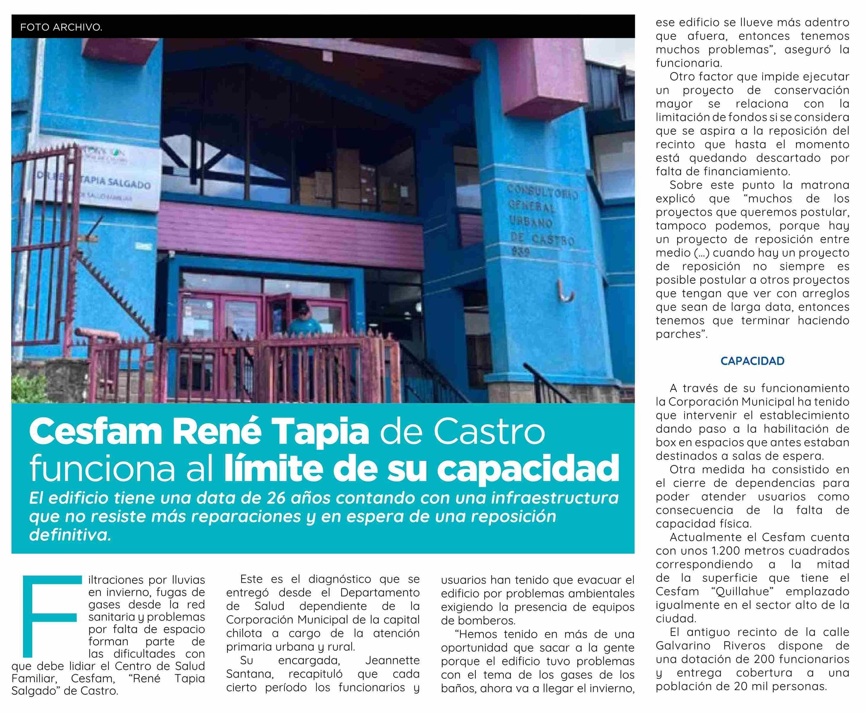 | Título: | Cesfam René Tapia de Castro funciona al límite de su capacidad |