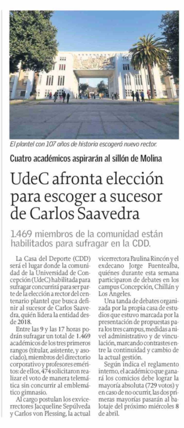 | Título: | UdeC afronta elección para escoger a sucesor de Carlos Saavedra |