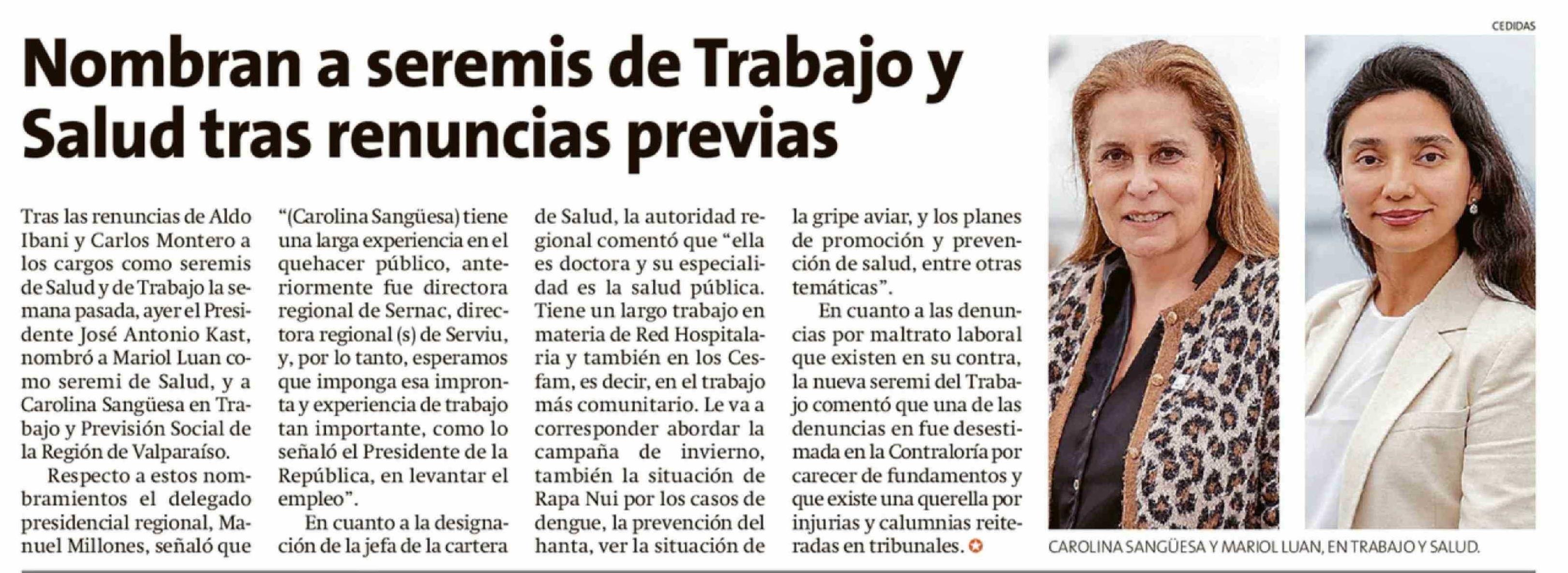 Nombran a seremis de Trabajo y Salud tras renuncias previas 15-04-2026 La Estrella de Valparaíso |
