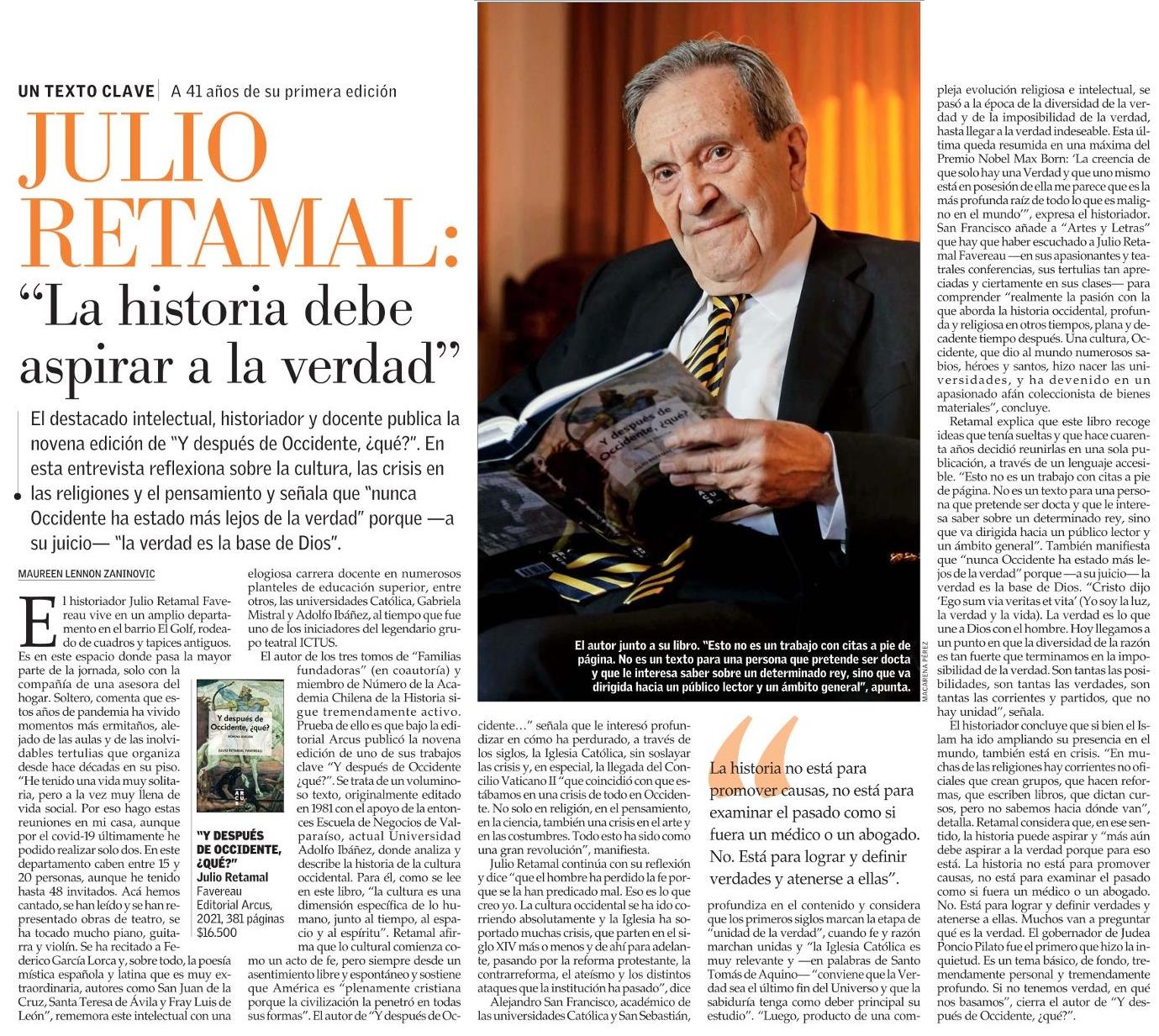 JULIO RETAMAL: "La historia debe aspirar a la verdad" 22-05-2022 El Mercurio |