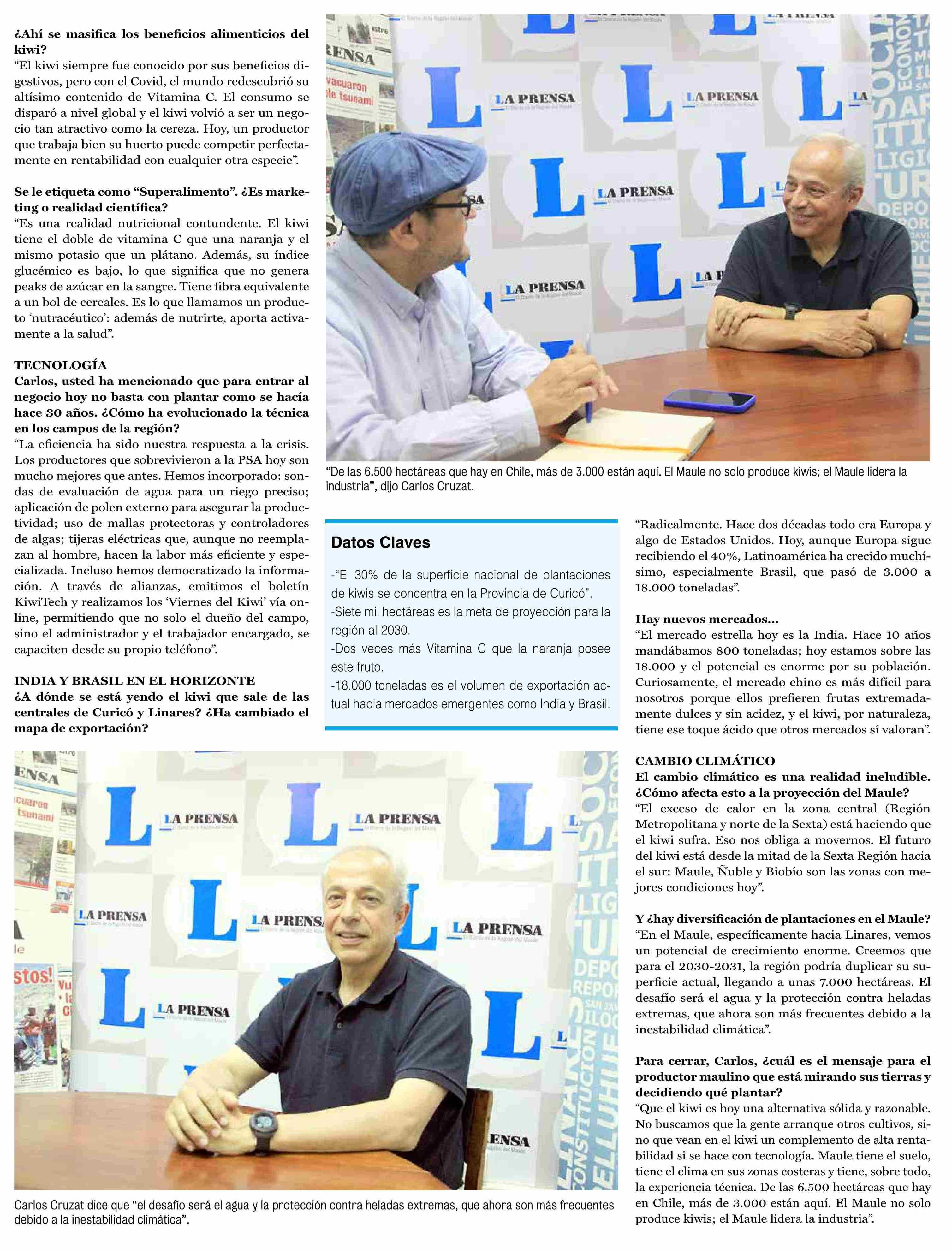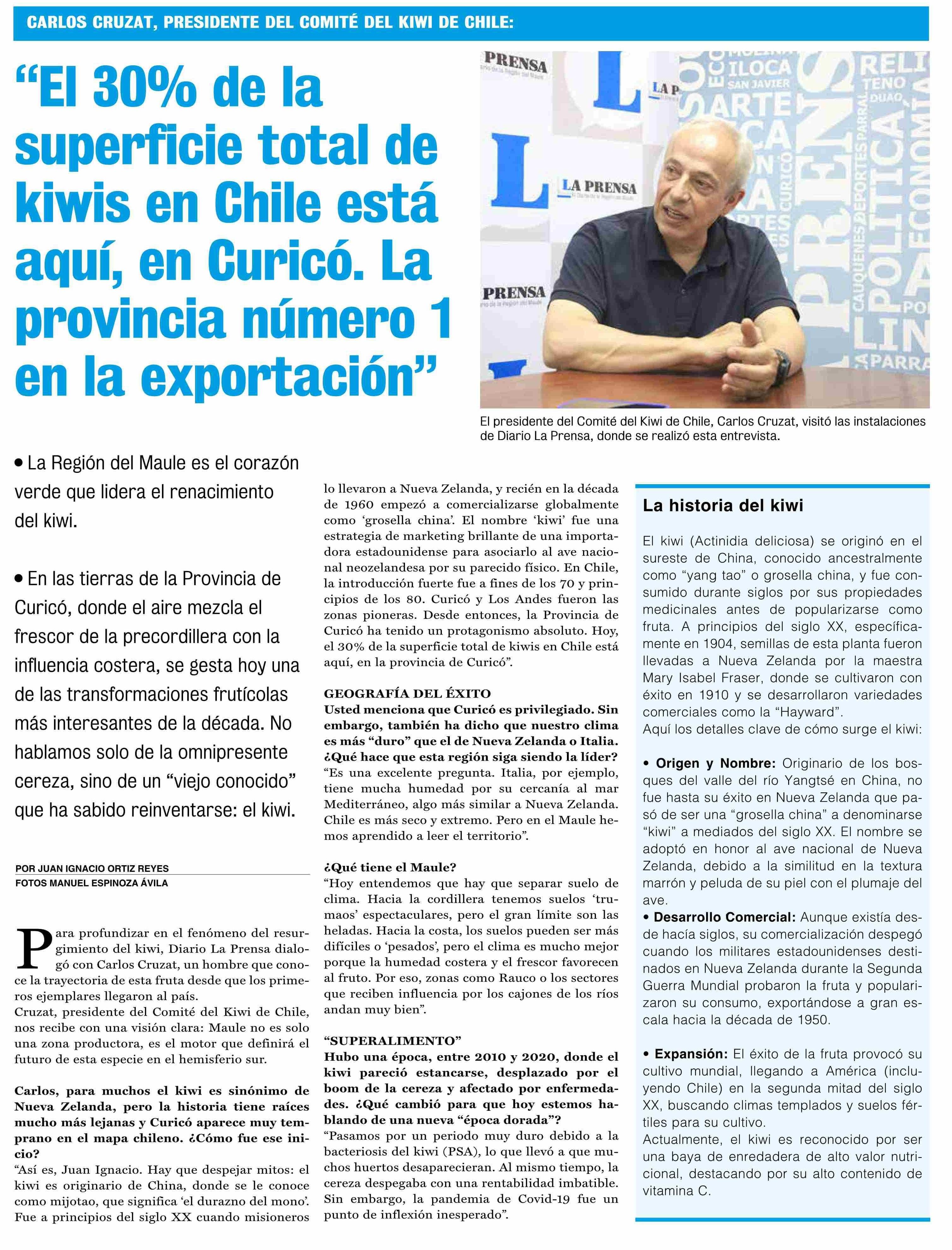 "EI 30% de la superficie total de kiwis en Chile está aquí, en Curicó. La provincia número 1 en la exportación" 25-01-2026 La Prensa de Curicó |