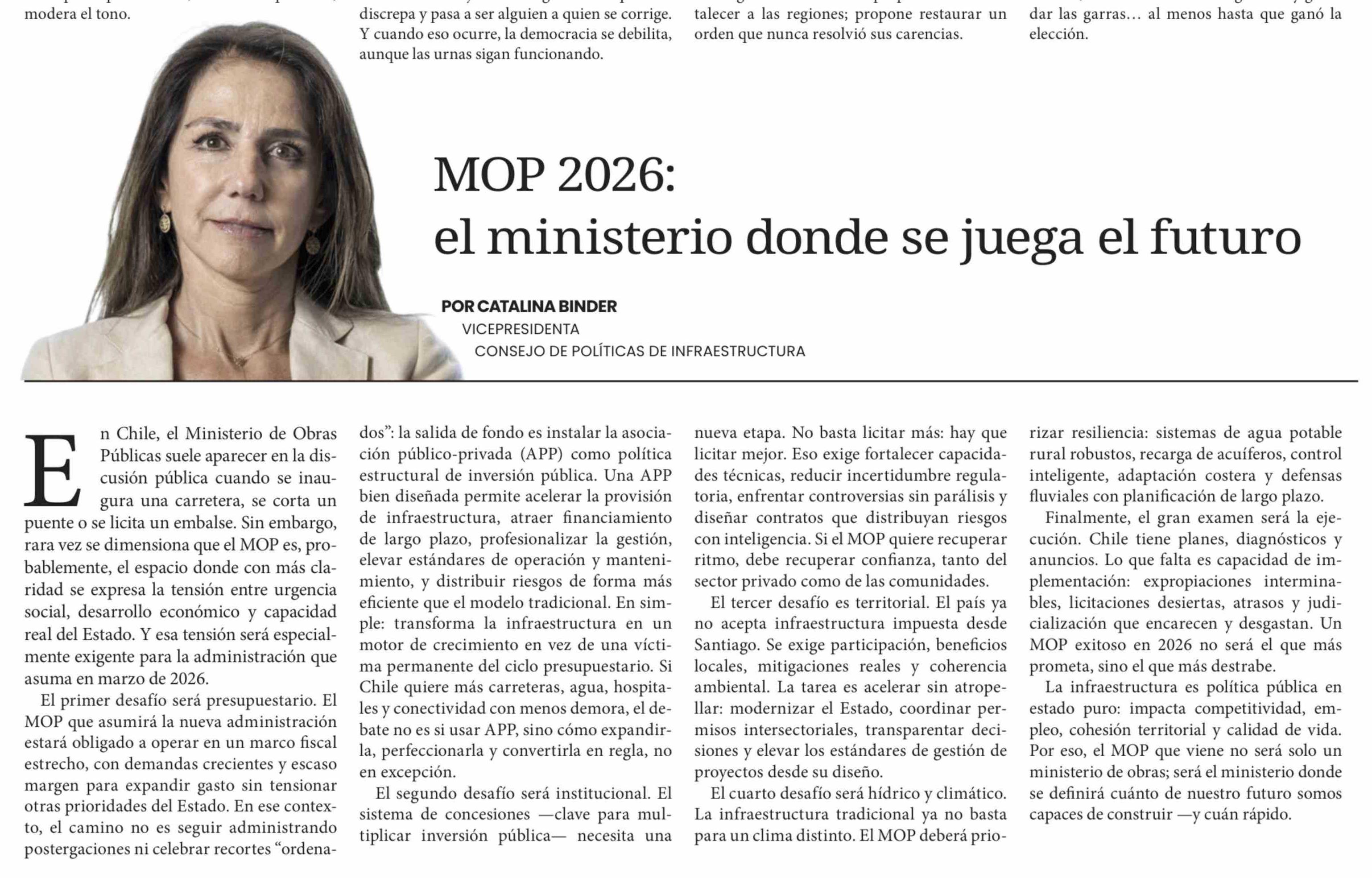Título: Columnas de Opinión: MOP 2026: El ministerio donde se juega el futuro