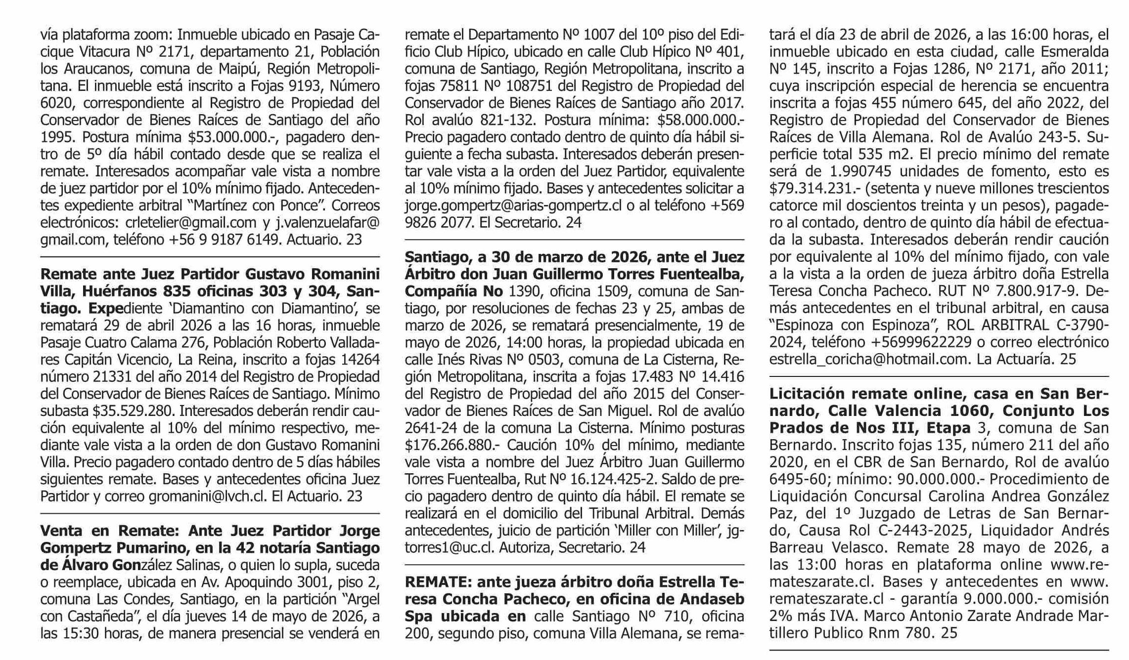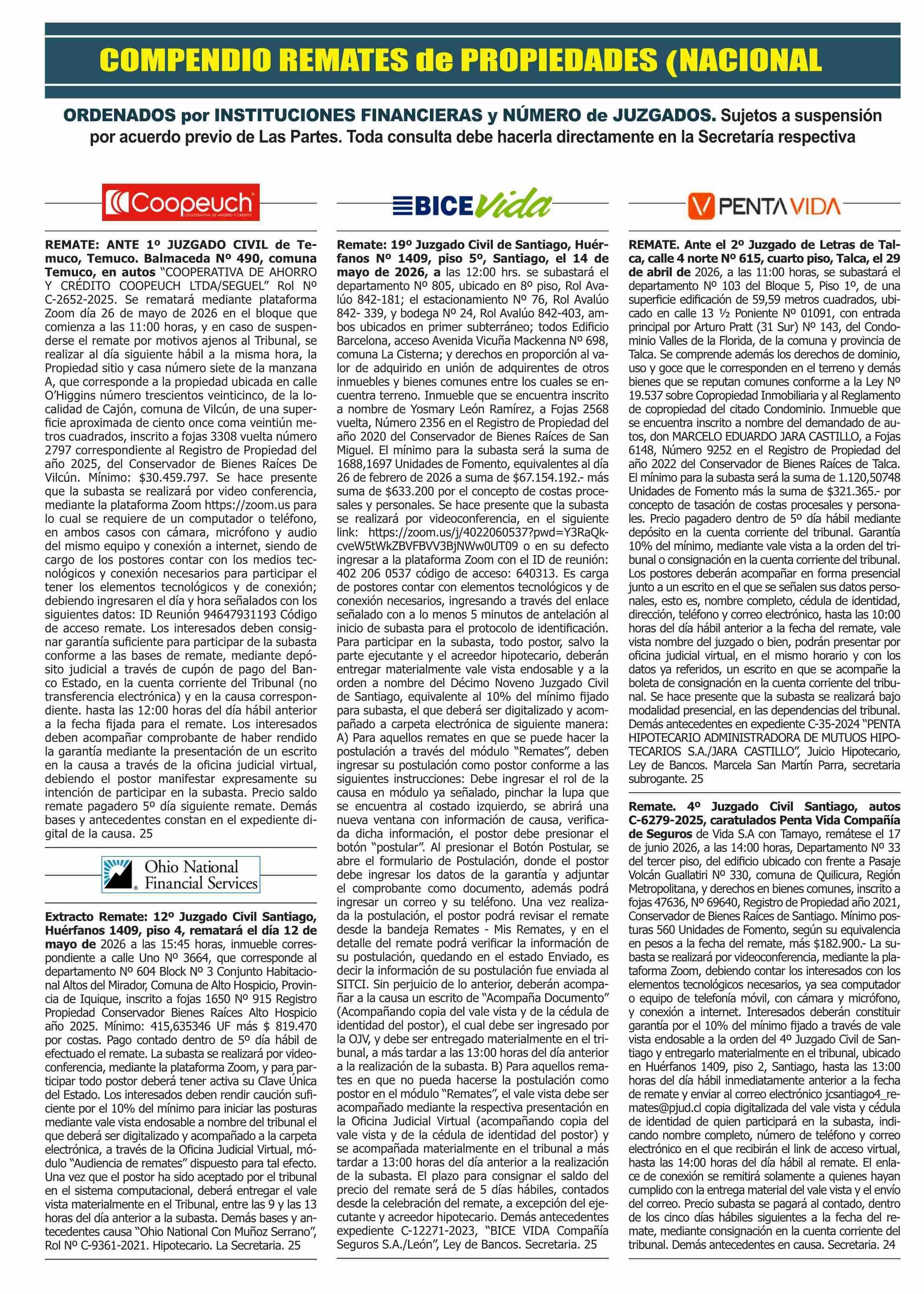 COMPENDIO REMATES de PROPIEDADES (NACIONAL