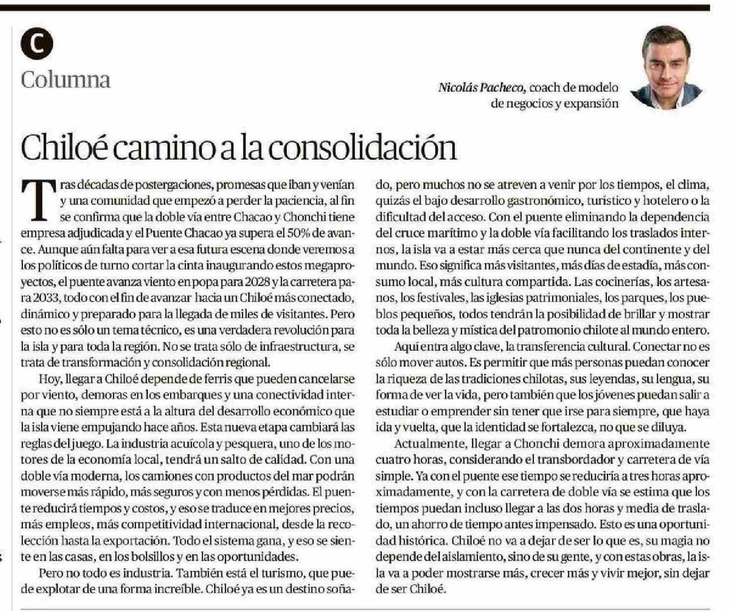 Columnas de Opinión: Chiloé camino a la consolidación 10-06-2025 El Llanquihue |