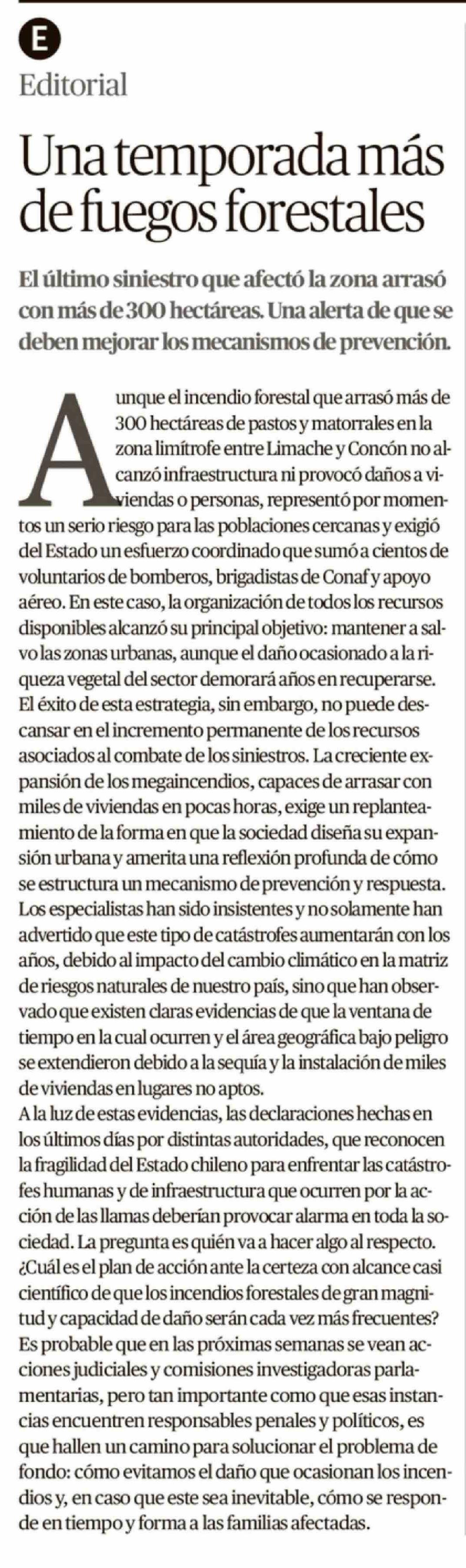 Editorial: Una temporada más de fuegos forestales 16-02-2026 El Mercurio de Valparaíso |