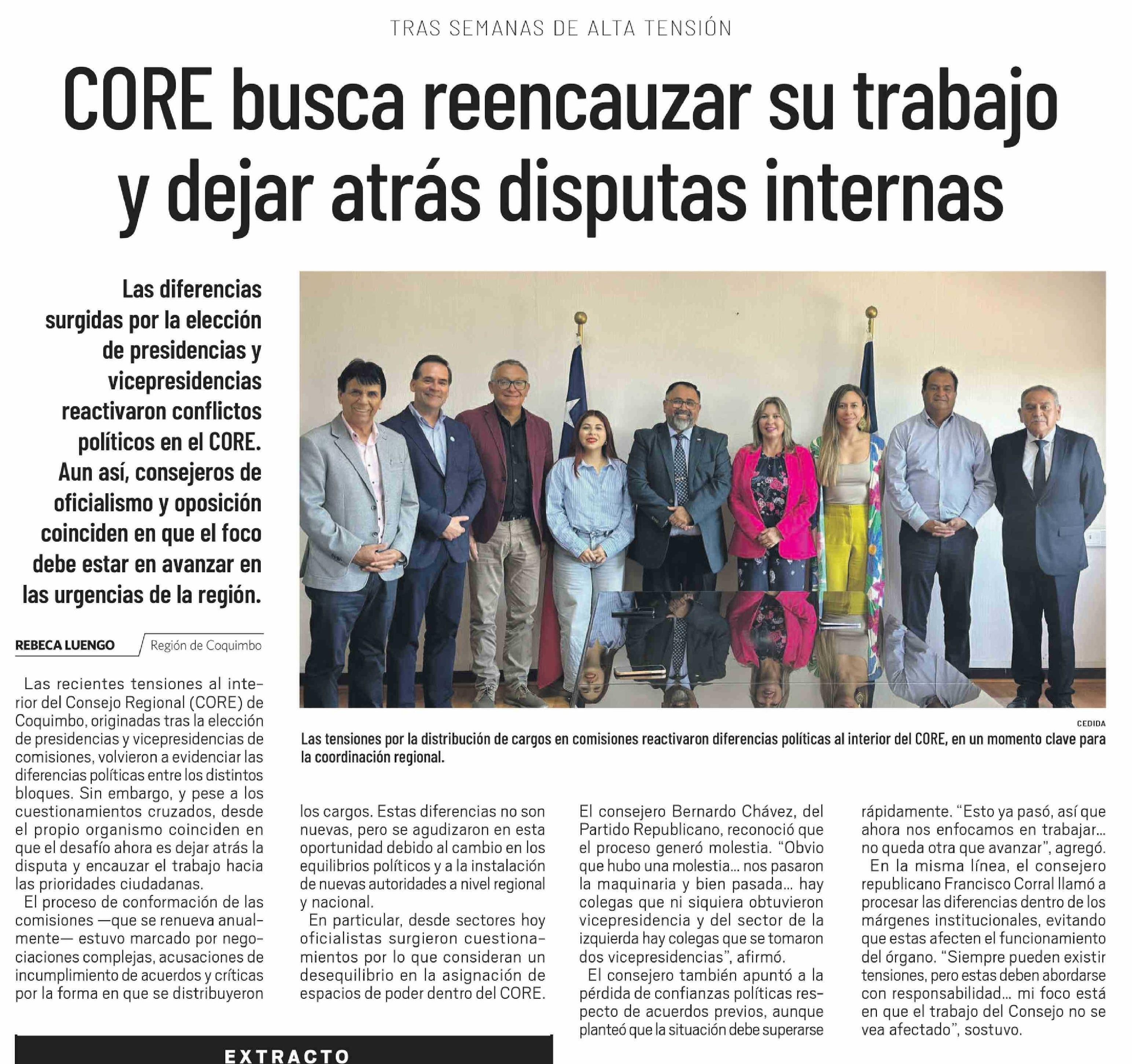 CORE busca reencauzar su trabajo y dejar atrás disputas internas 23-03-2026 El Día |