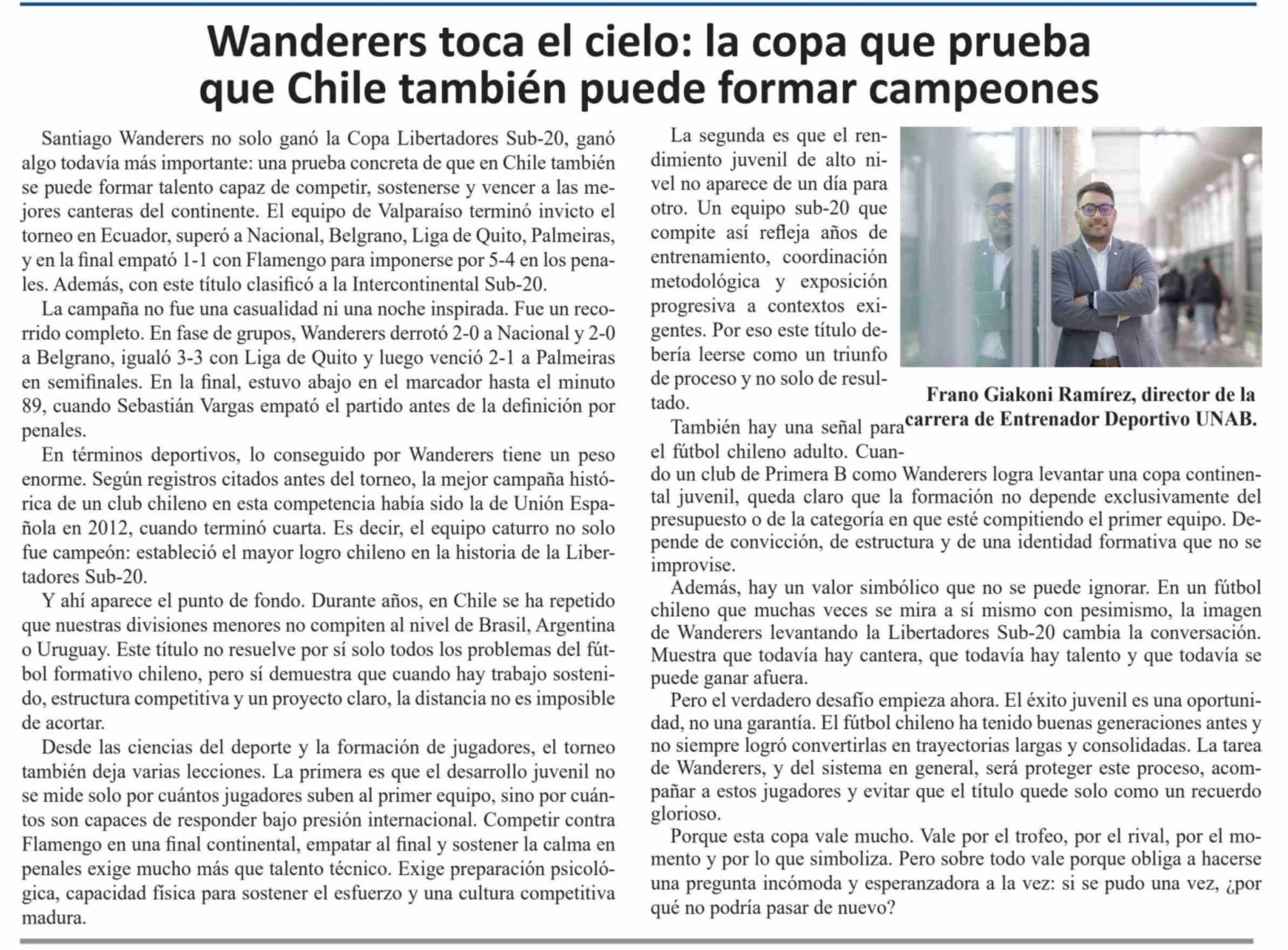 | Título: | Columnas de Opinión: Wanderers toca el cielo: la copa que prueba que Chile también puede formar campeones |