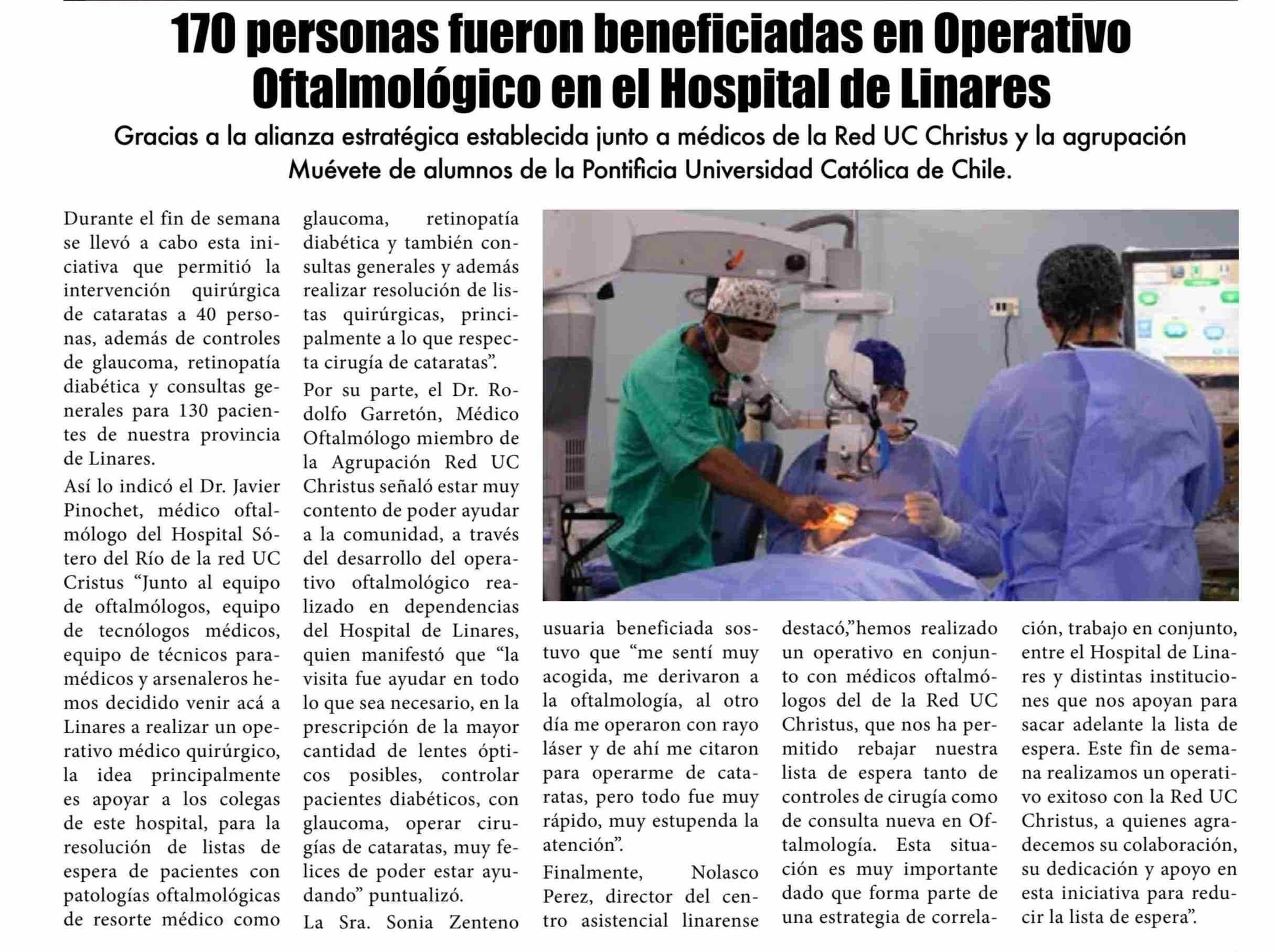 170 personas fueron beneficiadas en Operativo Oftalmológico en el Hospital de Linares 14-01-2025 El Lector |
