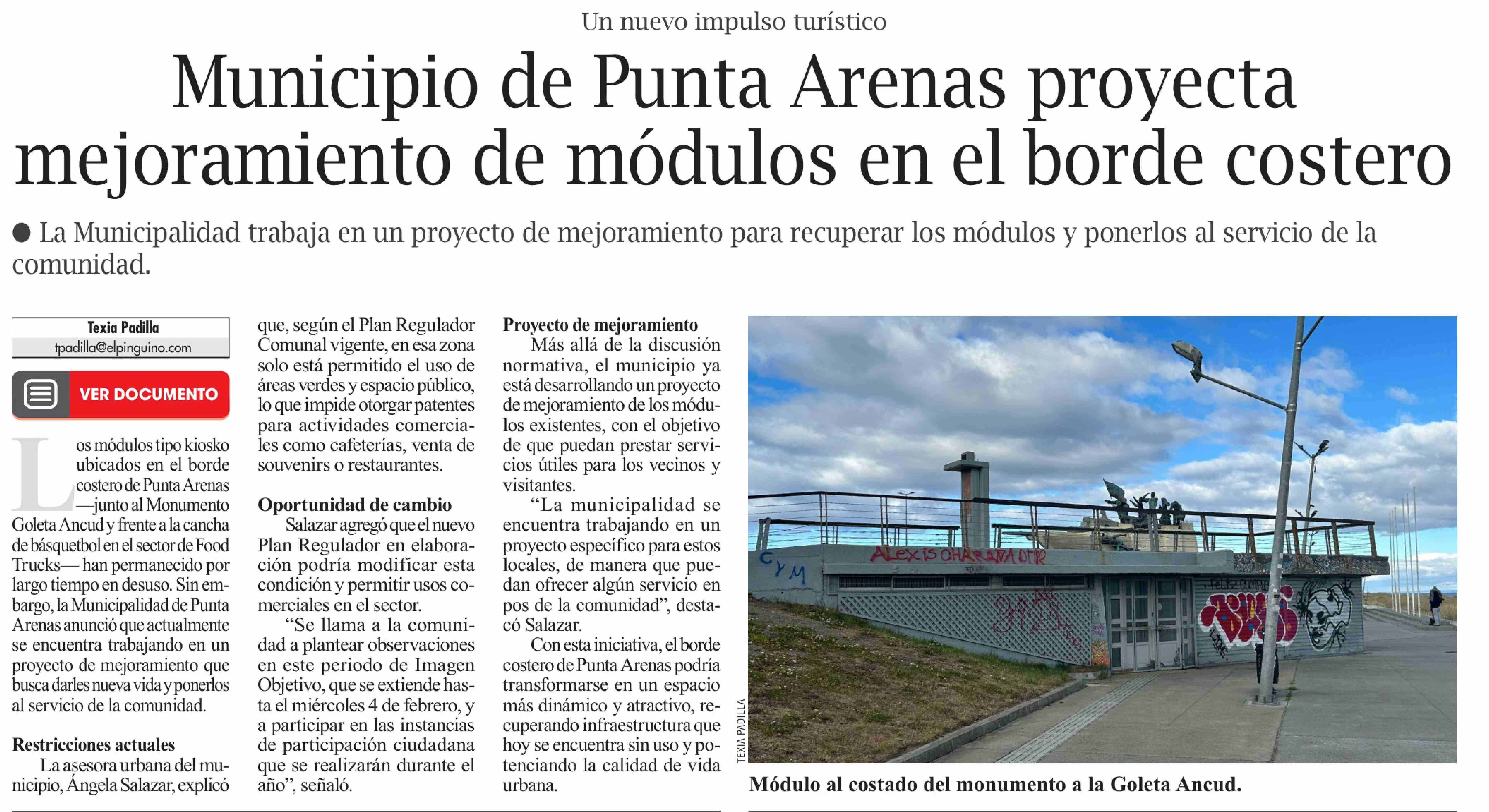 Municipio de Punta Arenas proyecta mejoramiento de módulos en el borde costero 03-02-2026 El Pingüino |