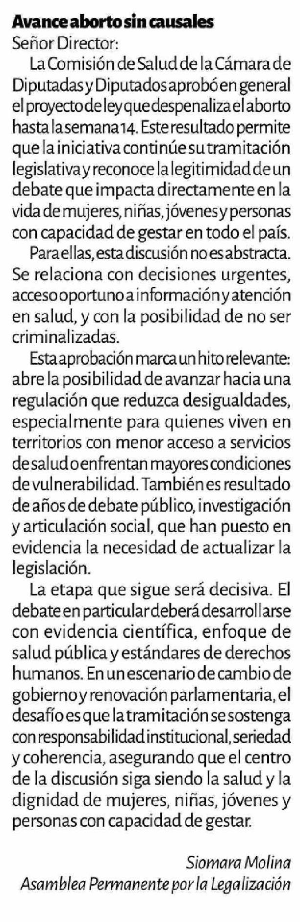 CARTAS: Avance aborto sin causales 12-03-2026 La Discusión |