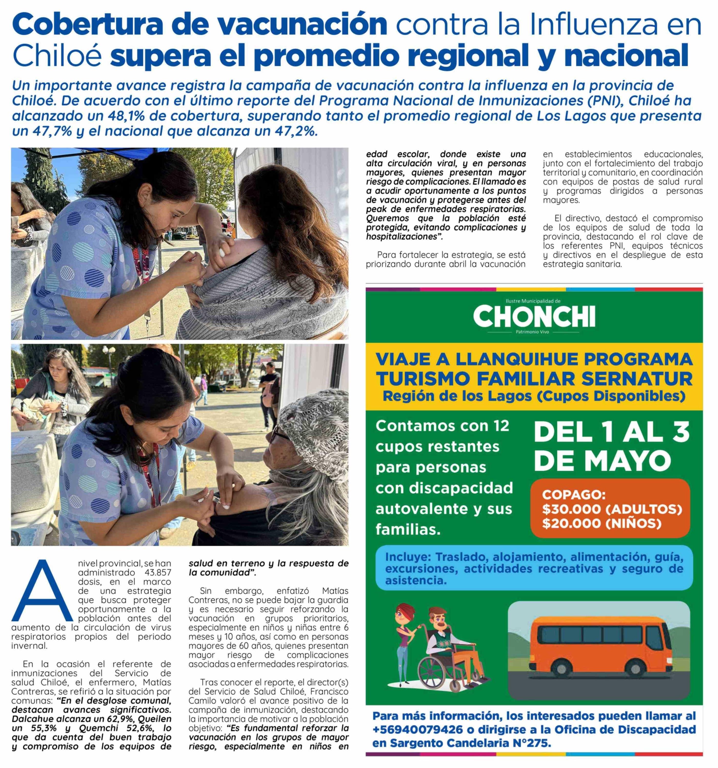 Cobertura de vacunación contra la Influenza en Chiloé supera el promedio regional y nacional 15-04-2026 El Insular |