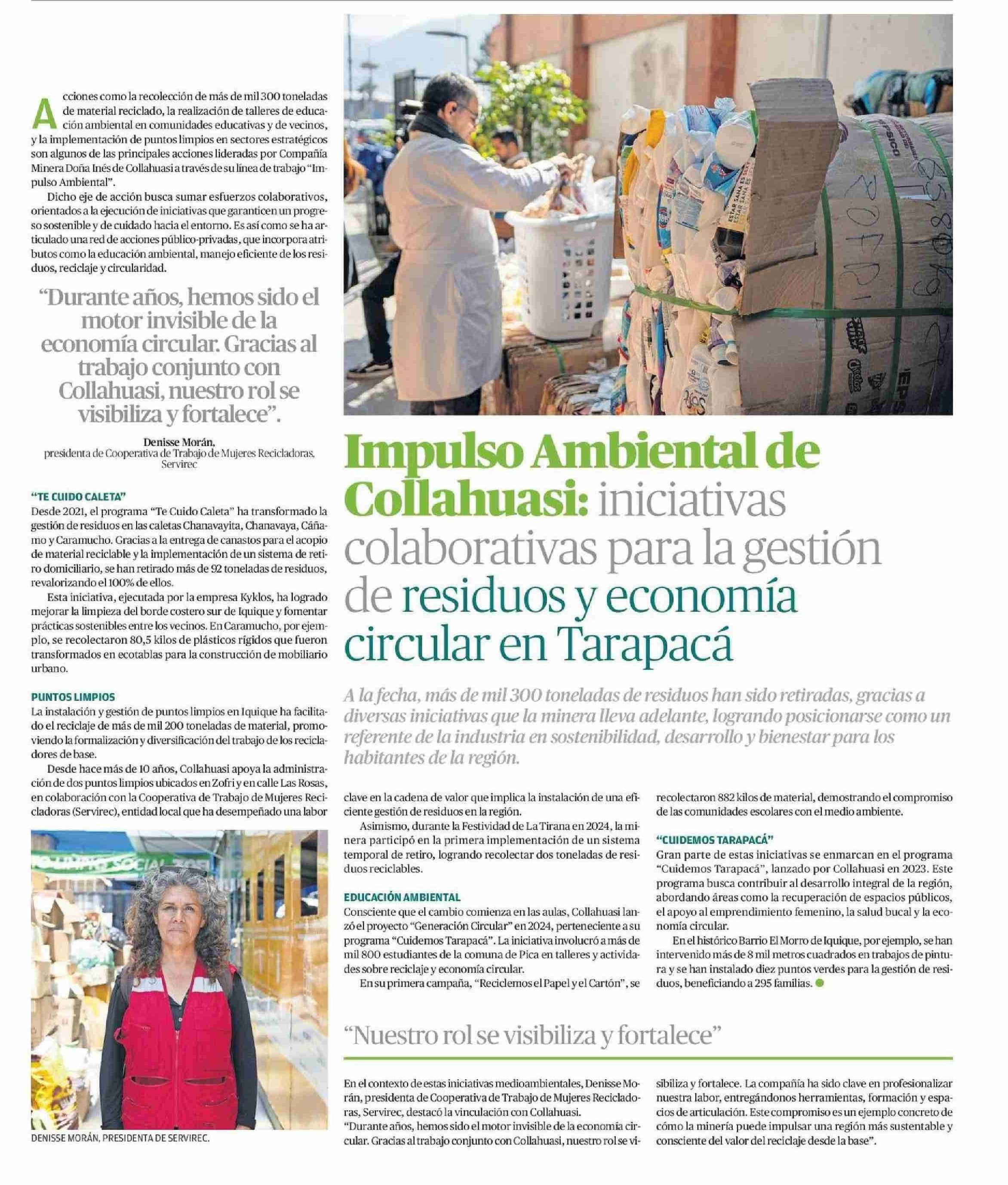 Impulso Ambiental de Collahuasi: iniciativas colaborativas para la gestión de residuos y economía circular en Tarapacá 01-06-2025 La Estrella de Iquique |