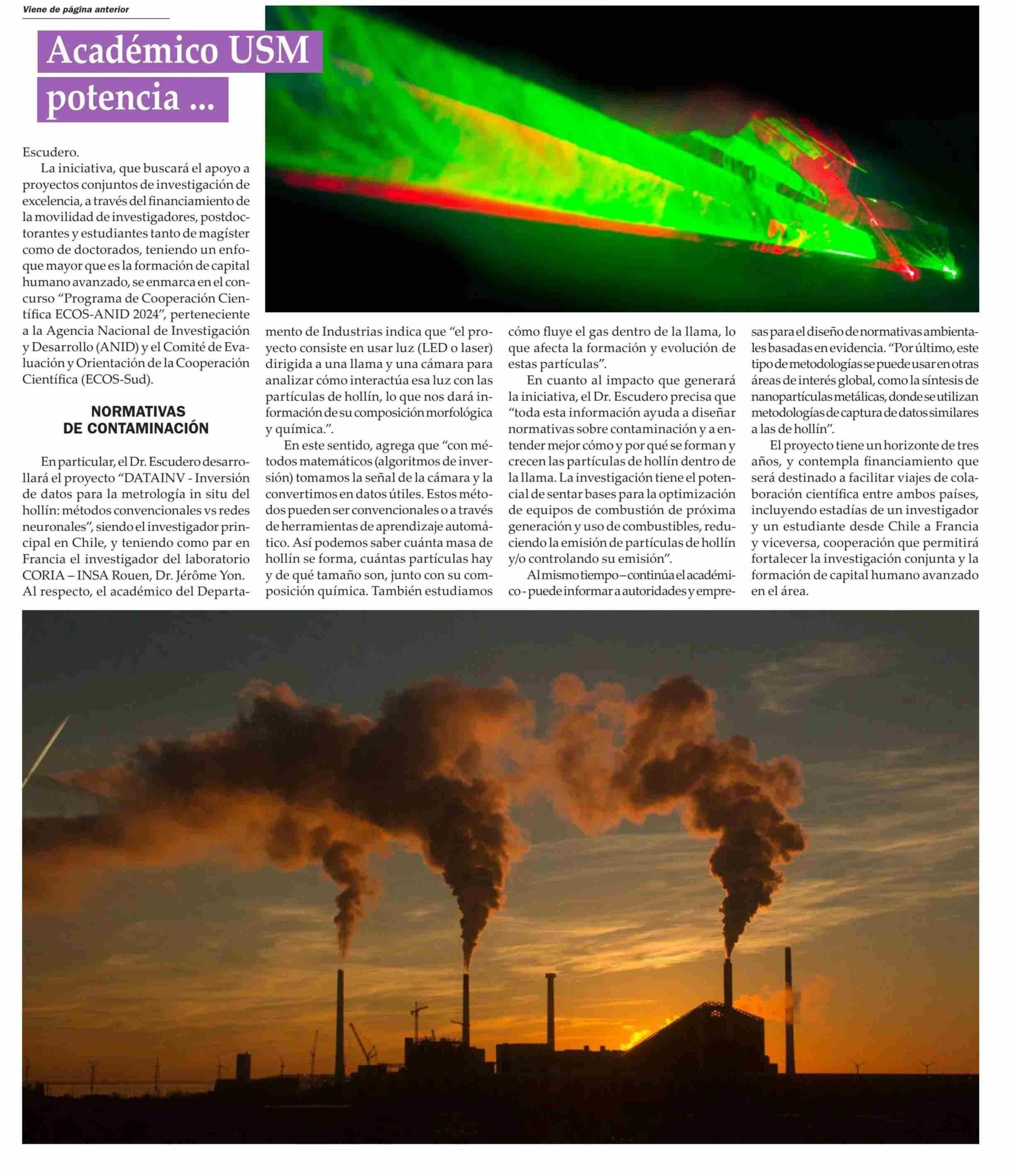 Académico USM potencia colaboración internacional gracias a proyecto ligado a reducción de contaminantes 10-06-2025 El Observador Vespertino |