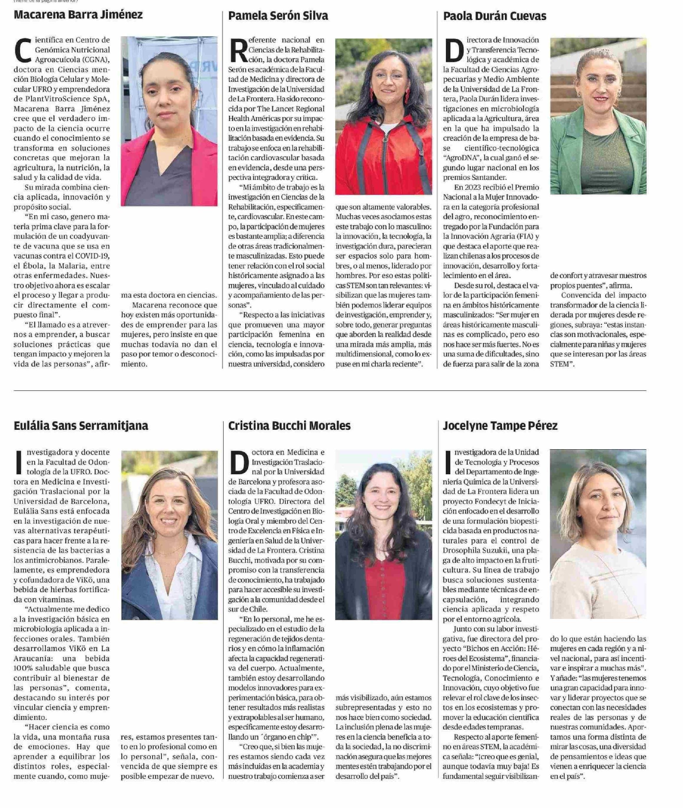 El impulso de nueve mujeres que transforman la ciencia y la innovación desde el sur de Chile 04-05-2025 El Austral de la Araucanía |