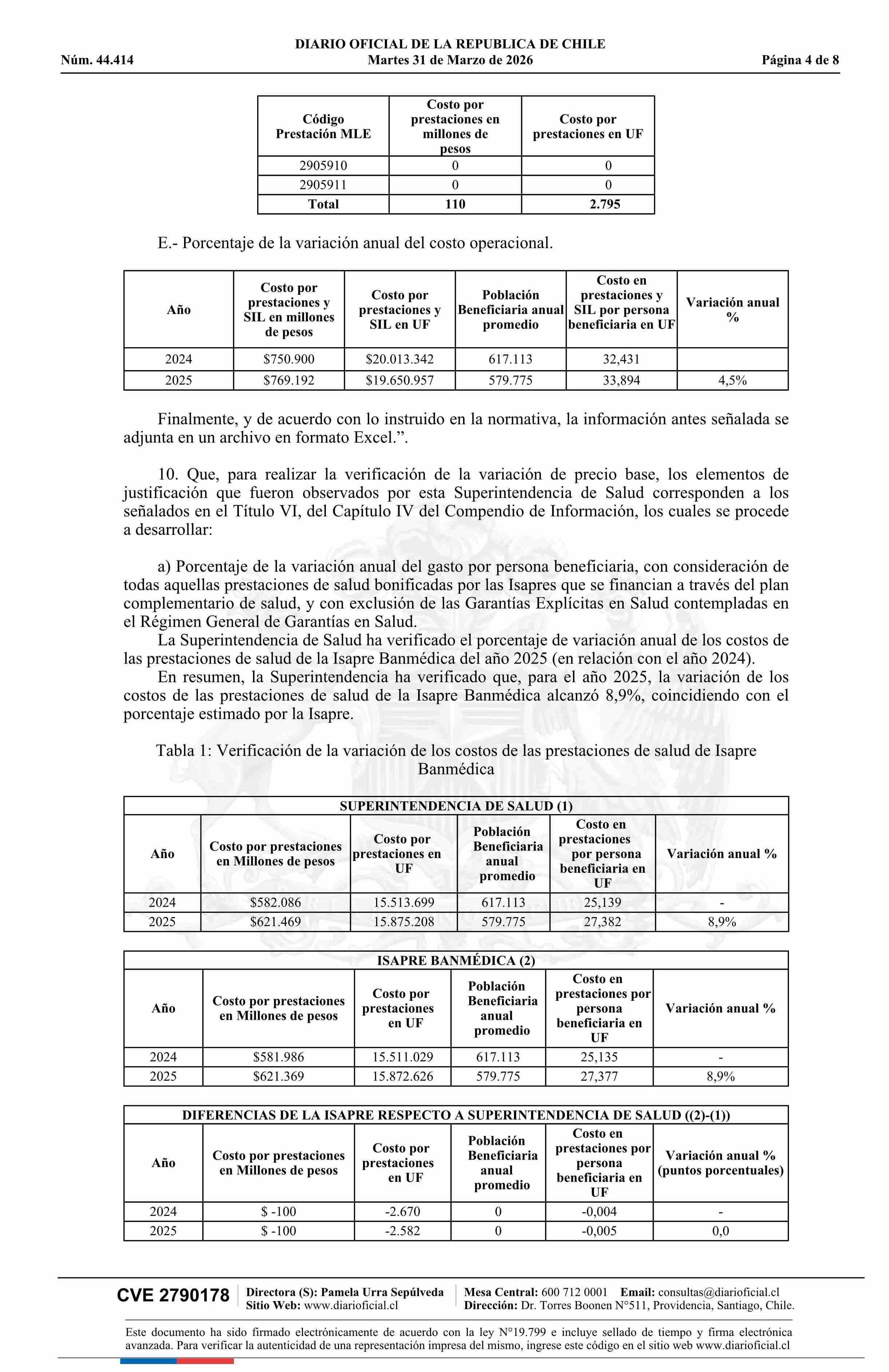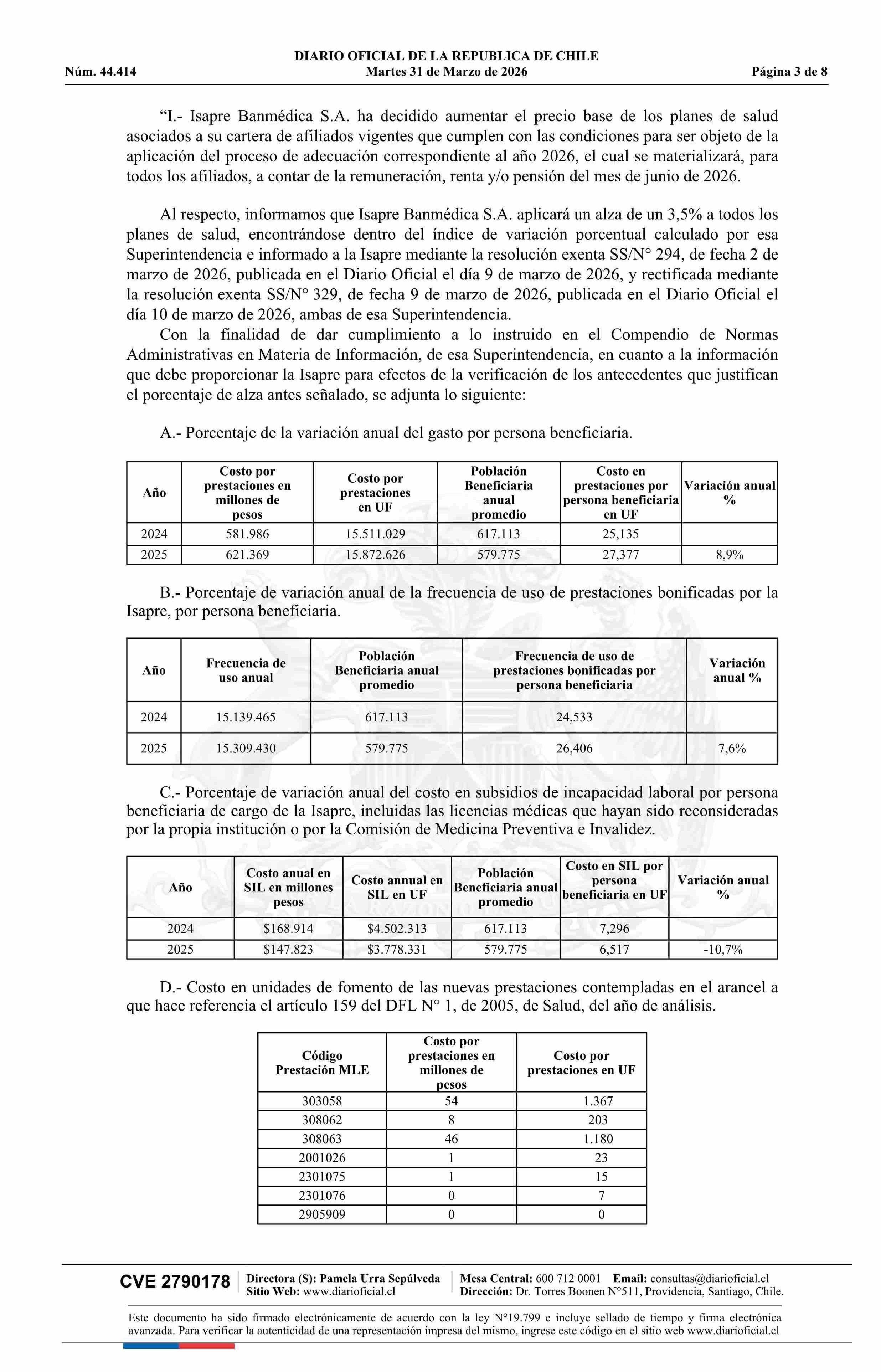 | Título: | Superintendencia de Salud / Intendencia de Fondos y Seguros Previsionales de Salud AUTORIZA EL AJUSTE DE LOS PRECIOS BASE DE LOS PLANES DE SALUD DE LA ISAPRE BANMÉDICA S.A. (Resolución) |