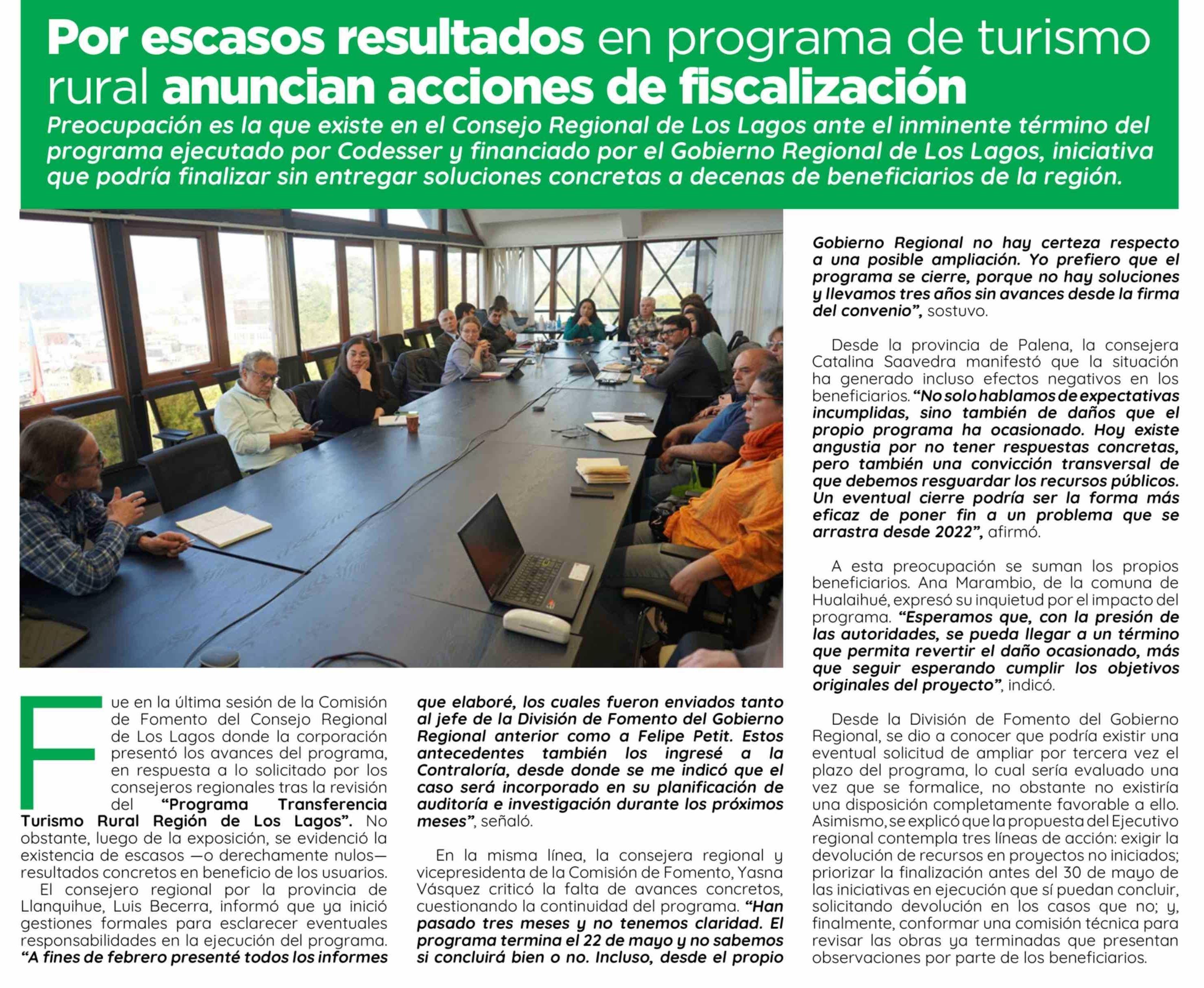 Por escasos resultados en programa de turismo rural anuncian acciones de fiscalización 02-04-2026 El Insular |