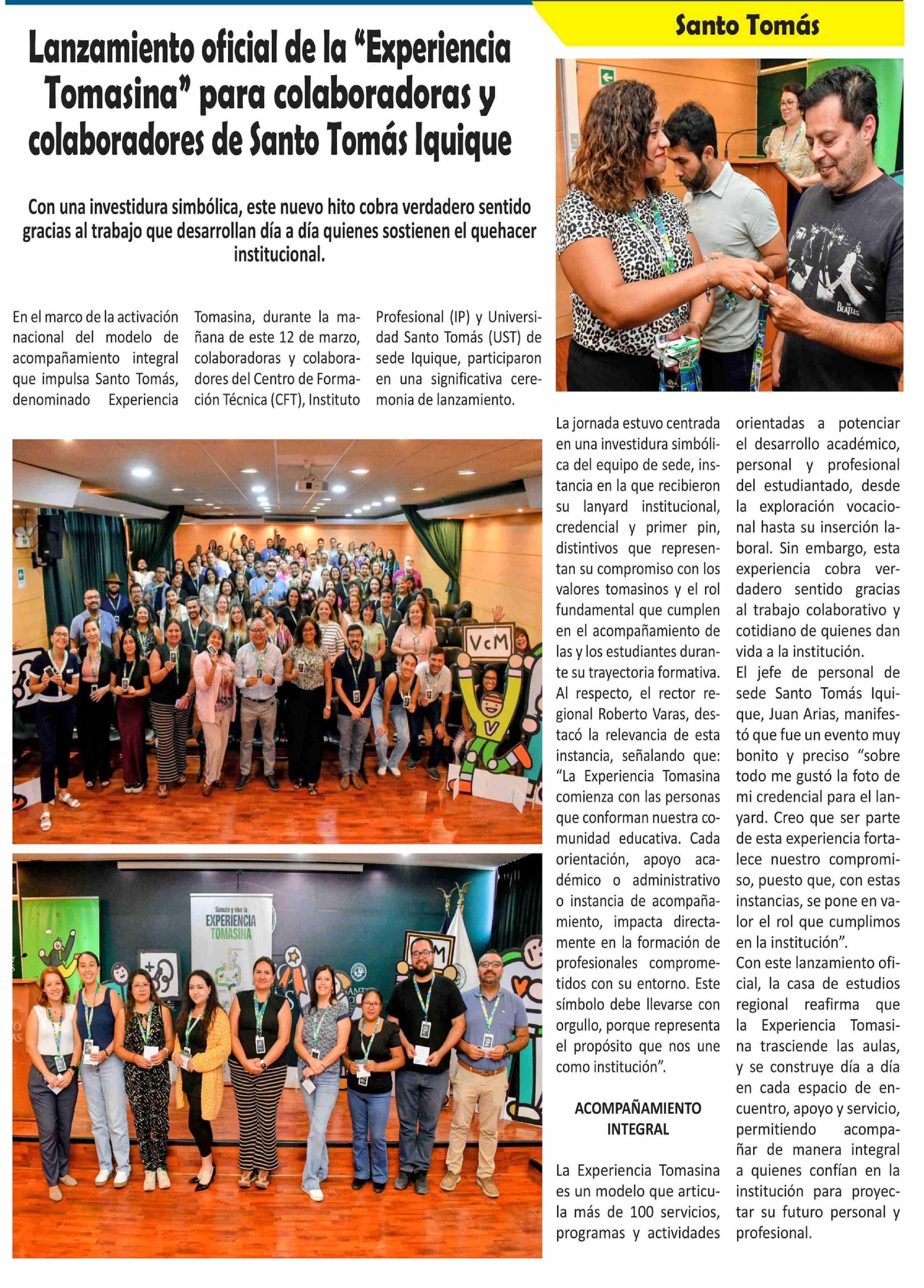 Título: Lanzamiento oficial de la "Experiencia Tomasina" para colaboradoras y colaboradores de Santo Tomás Iquique