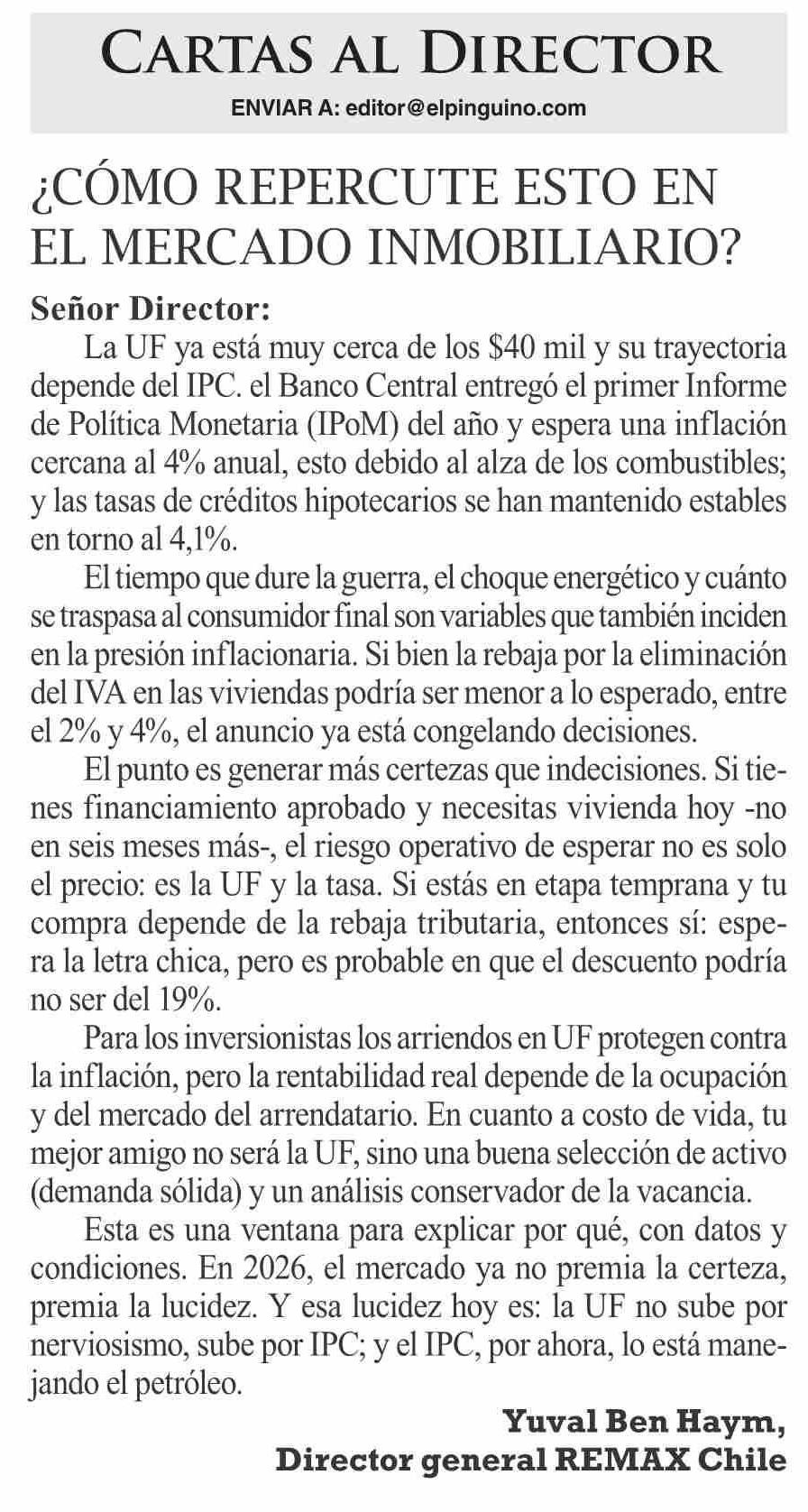 Cartas: ¿Cómo repercute esto en el mercAdo inmobiliArio? 27-03-2026 El Pingüino |