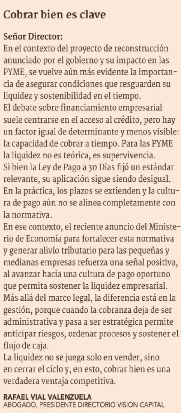 CARTAS: Cobrar bien es clave 23-04-2026 Diario Financiero |
