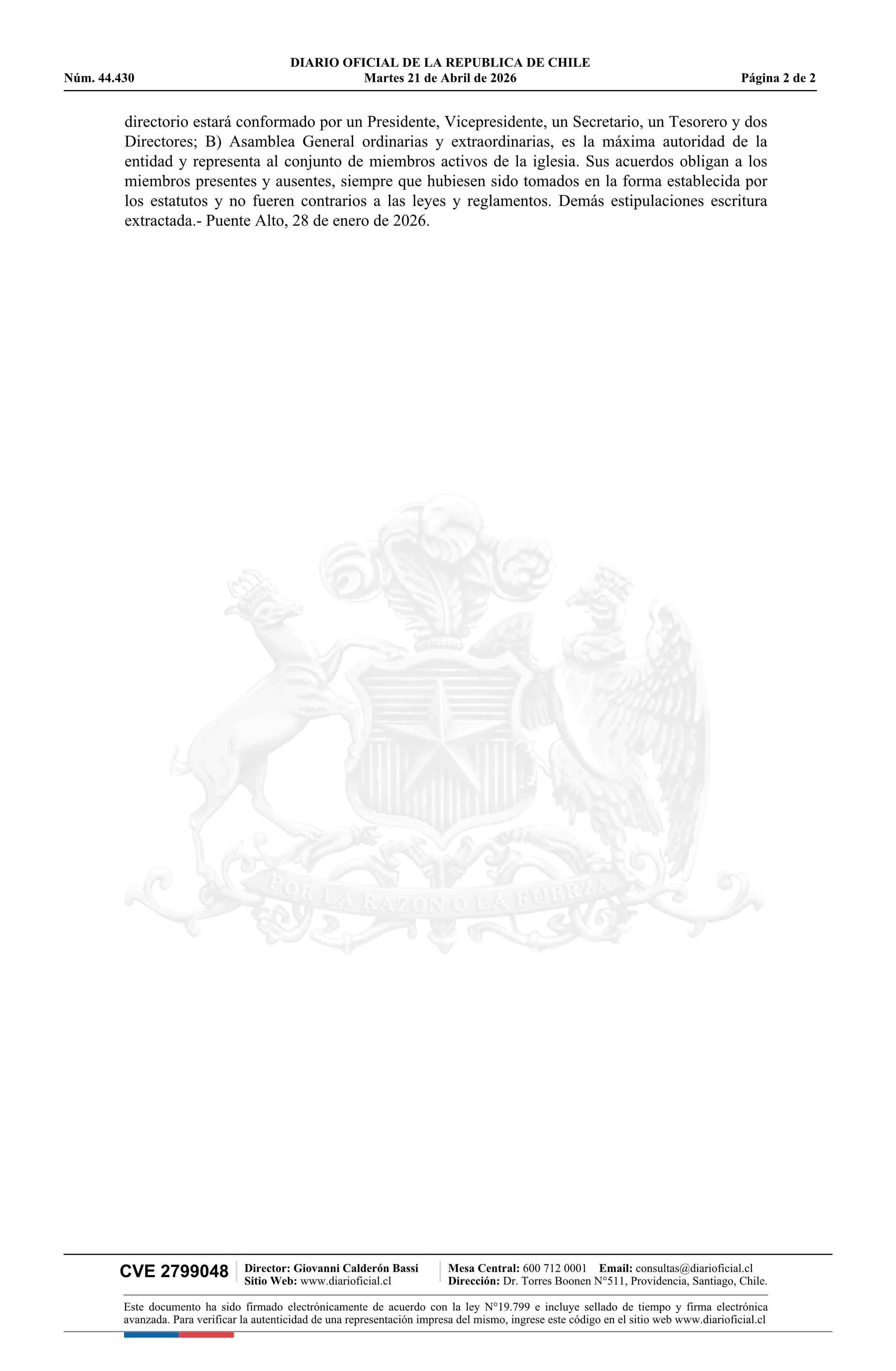 Constitución Centro Cristiano Bet 21-04-2026 Diario Oficial Edición Electrónica |