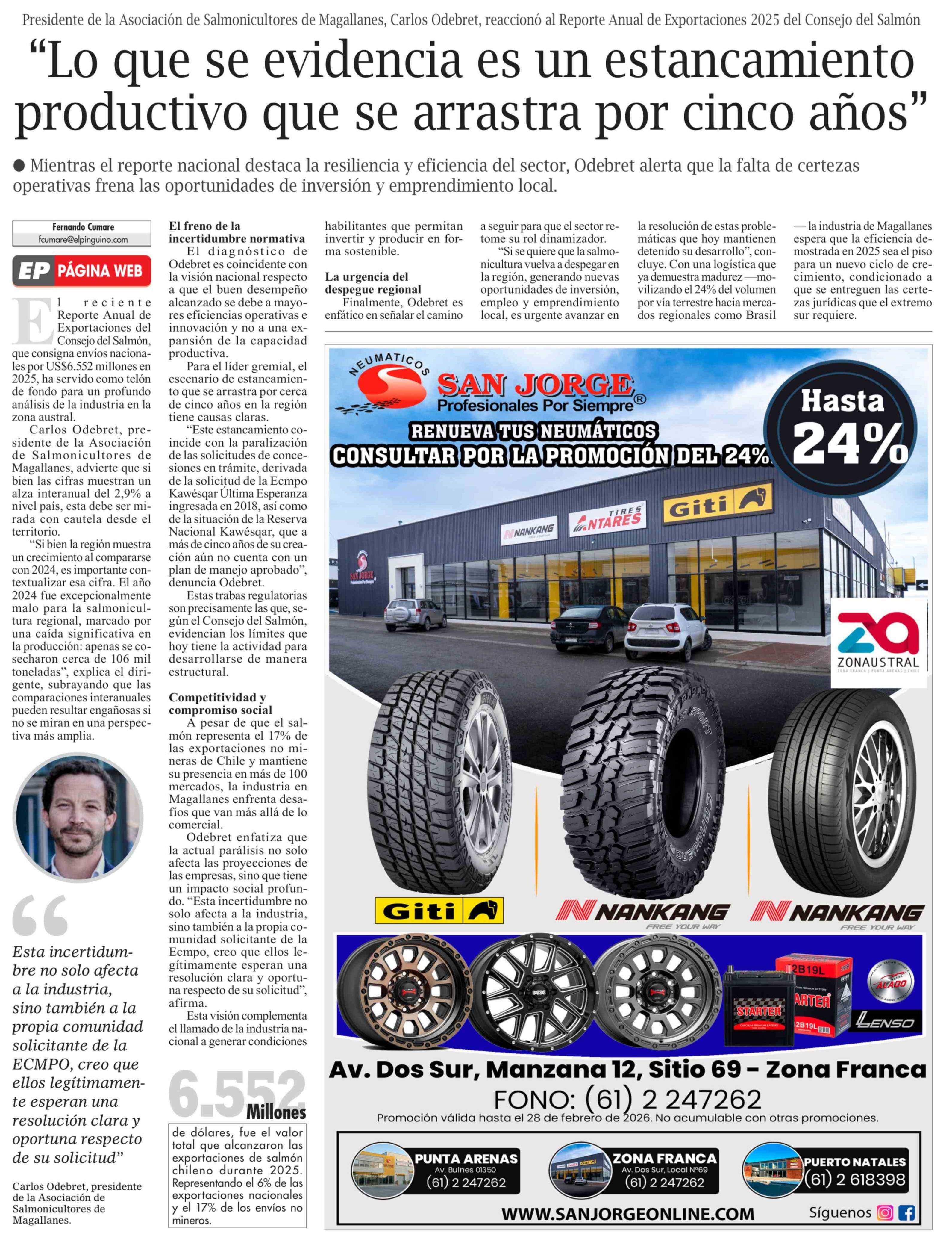 "Lo que se evidencia es un estancamiento productivo que se arrastra por cinco años" 06-02-2026 El Pingüino |