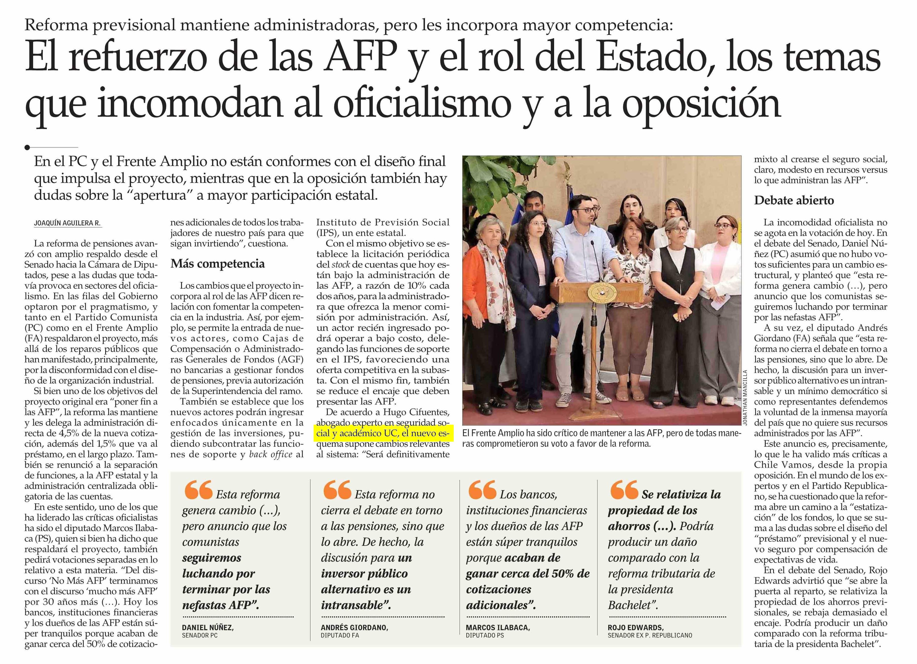 Título: El refuerzo de las AFP y el rol del Estado, los temas que incomodan al oficialismo y a la oposición