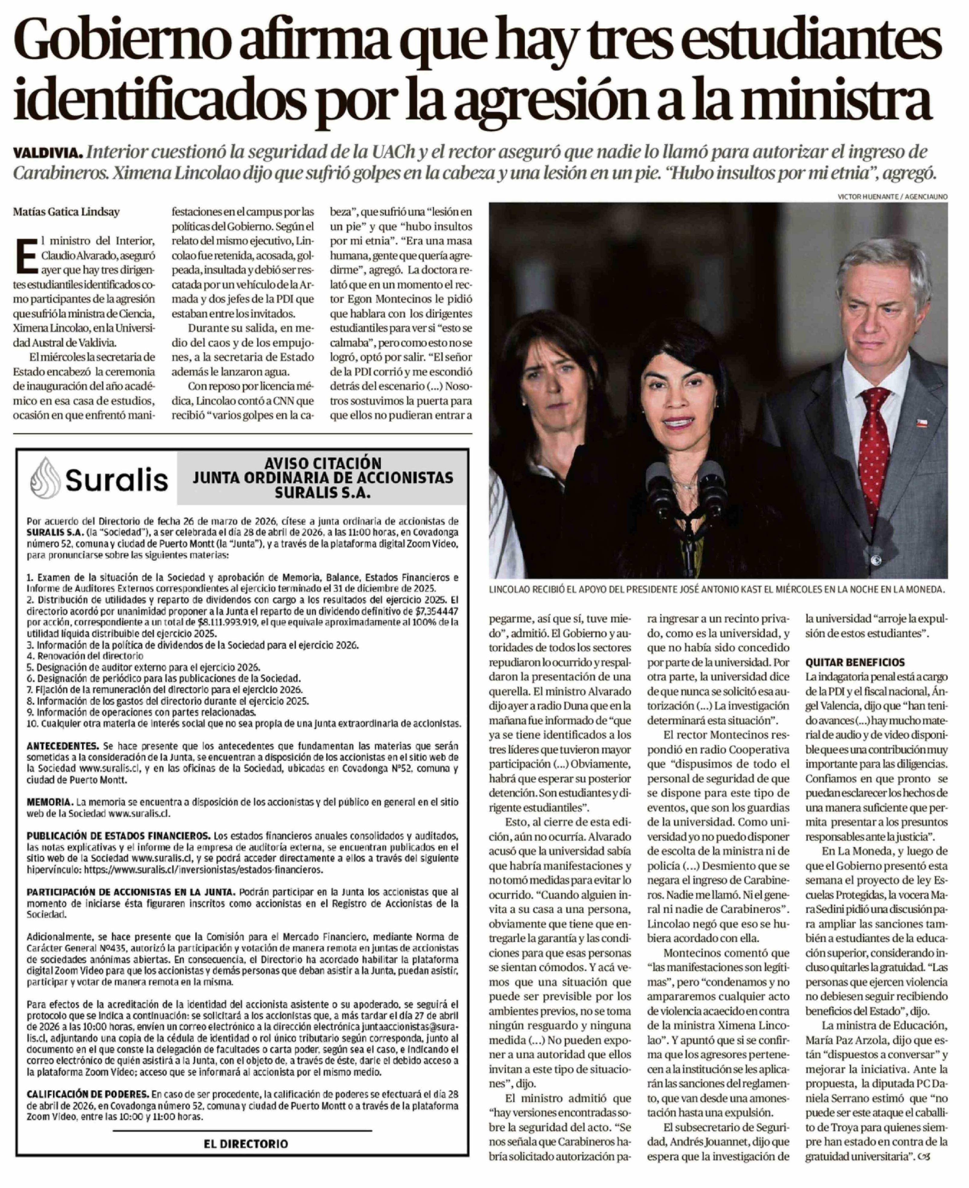 Título: Gobierno afirma que hay tres estudiantes identificados por la agresión a la ministra