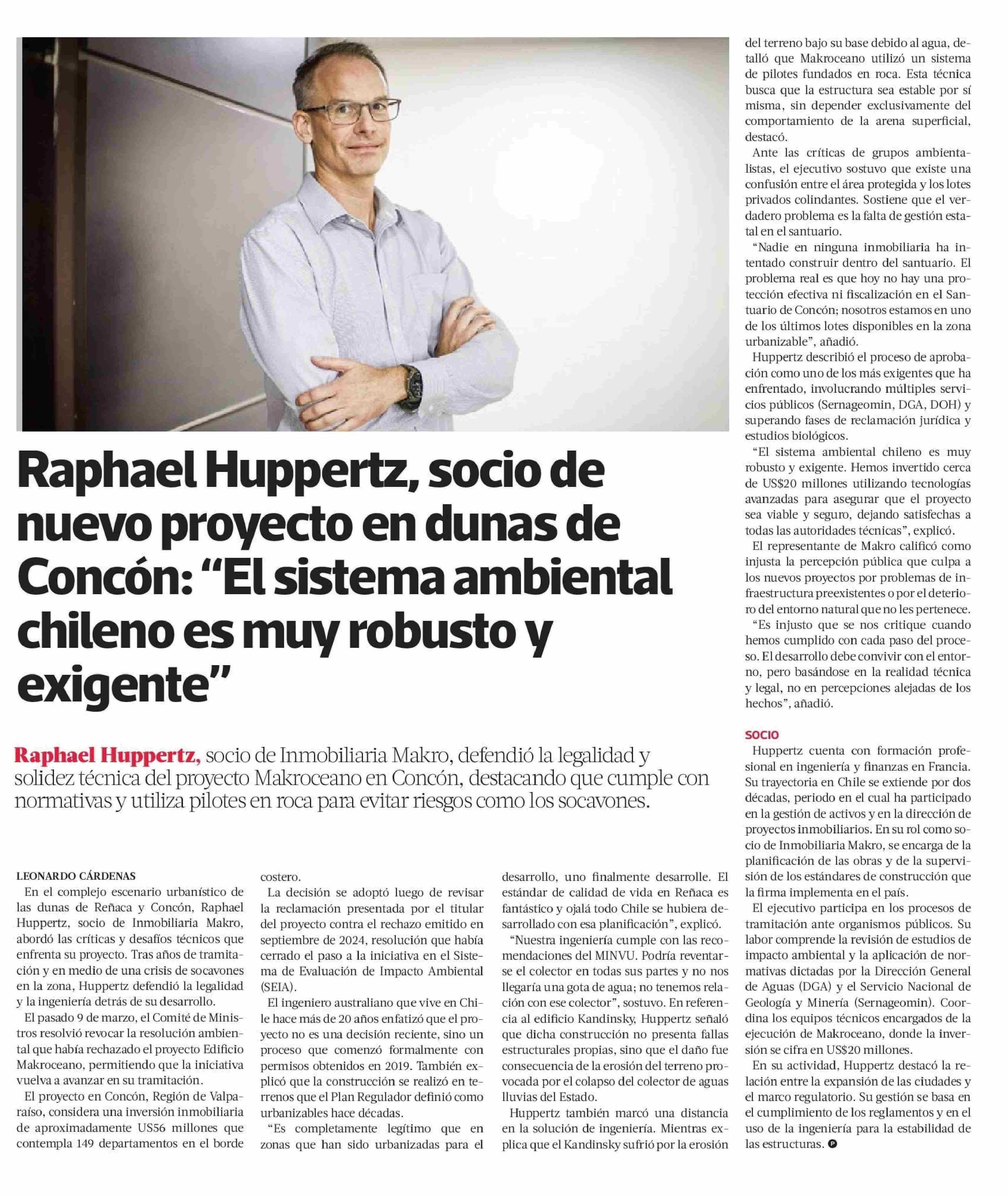 Raphael Huppertz, socio de nuevo proyecto en dunas de Concón: “El sistema ambiental chileno es muy robusto y exigente” 28-04-2026 La Tercera |