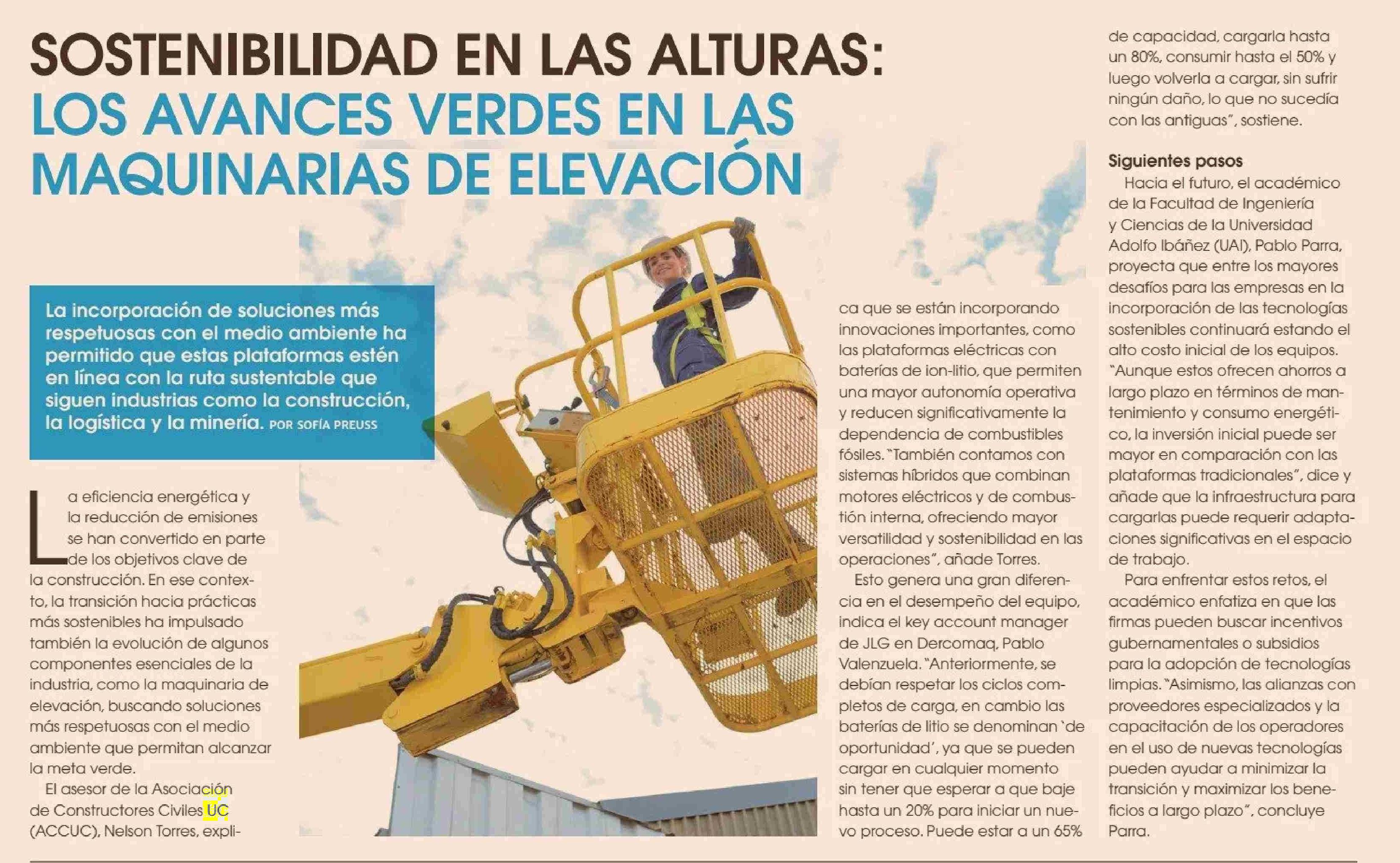 SOSTENIBILIDAD EN LAS ALTURAS: LOS AVANCES VERDES EN LAS MAQUINARIAS DE ELEVACIÓN 23-01-2025 Diario Financiero |