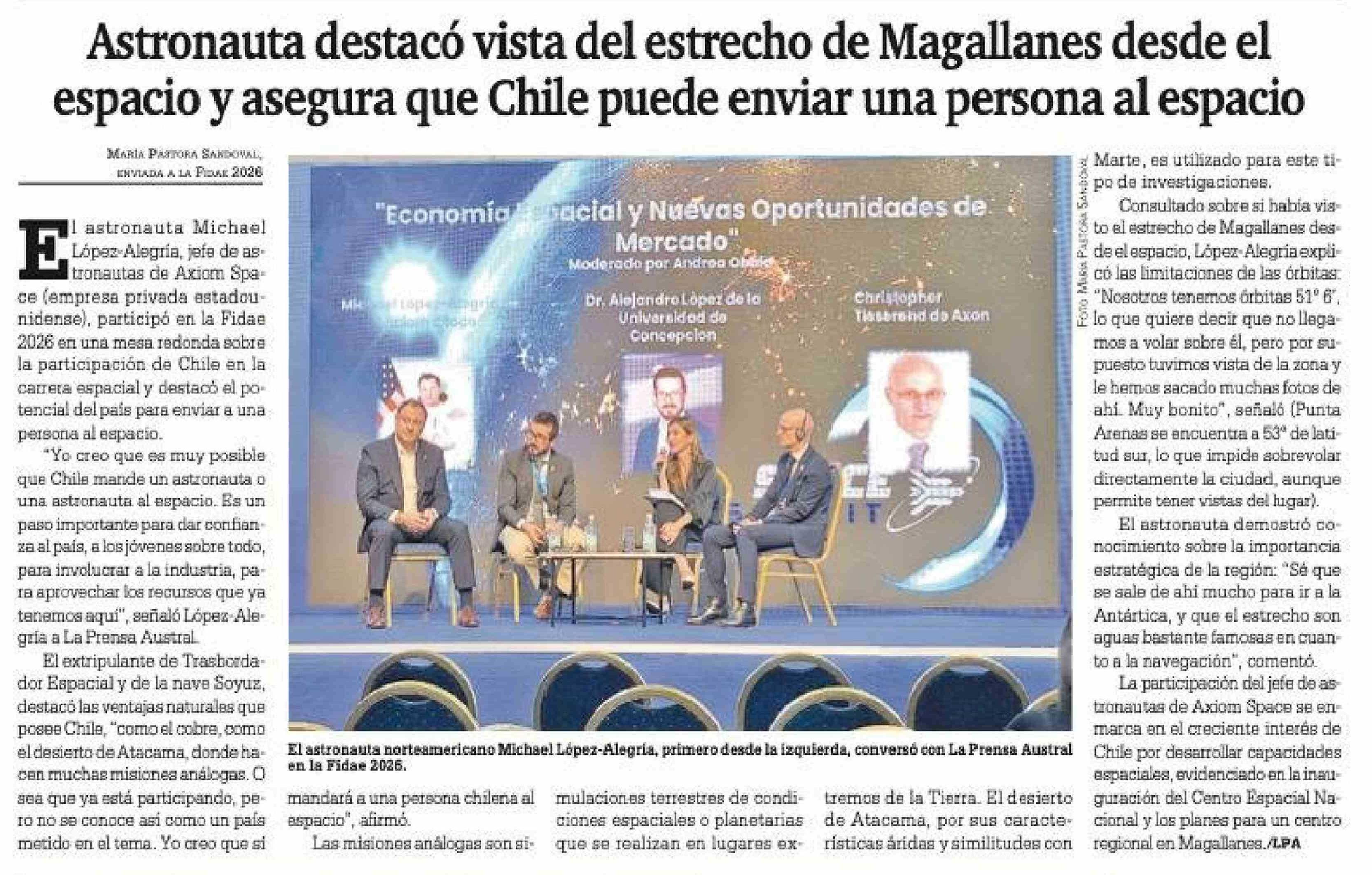 Título: Astronauta destacó vista del estrecho de Magallanes desde el espacio y asegura que Chile puede enviar una persona al espacio