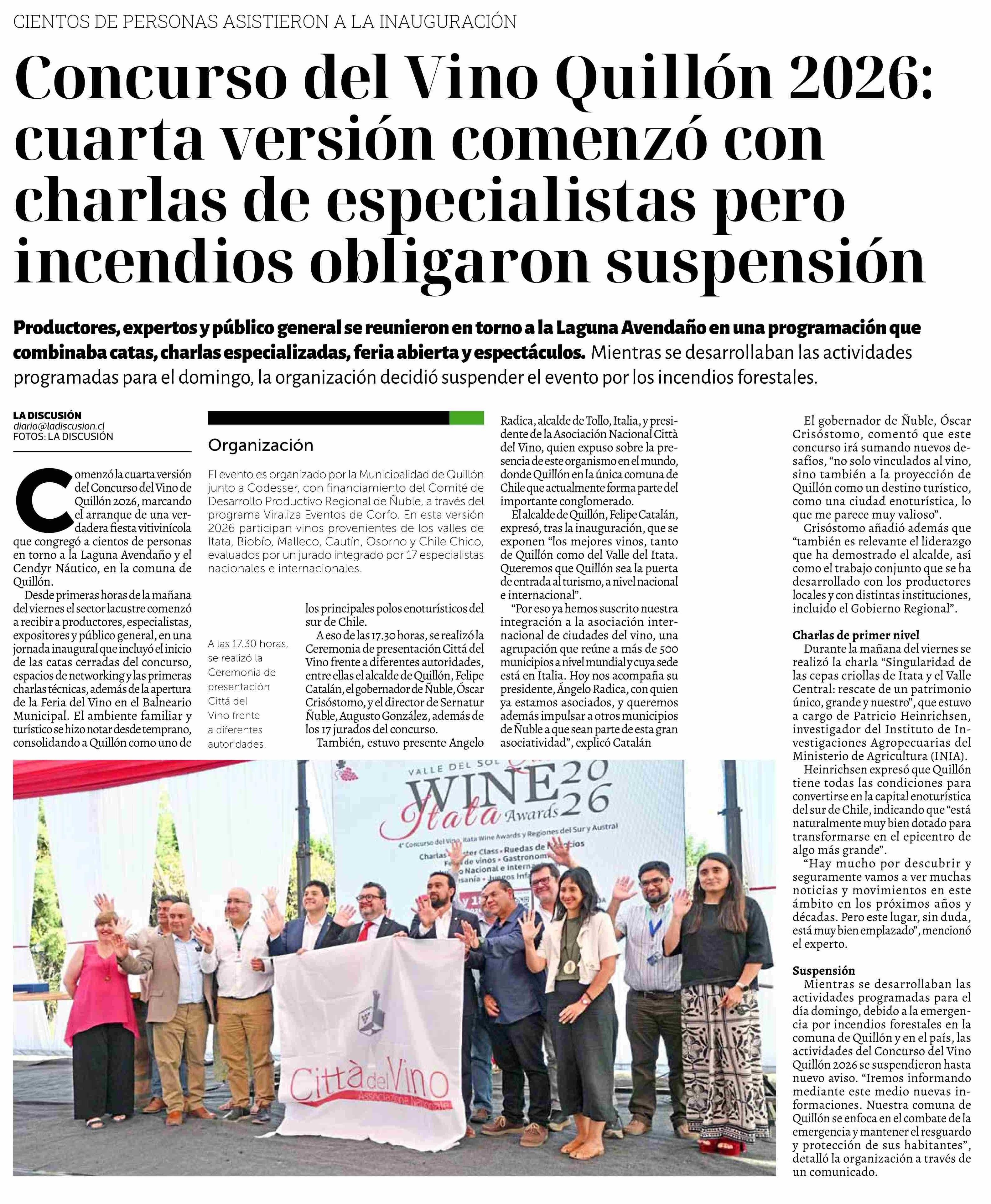 Título: Concurso del Vino Quillón 2026: cuarta versión comenzó con charlas de especialistas pero incendios obligaron suspensión