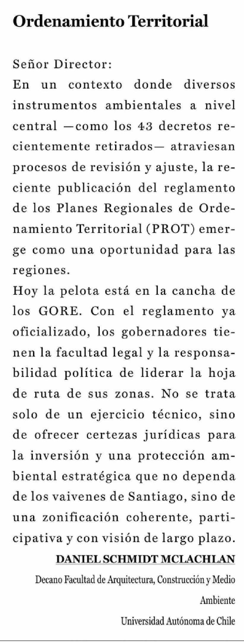 Cartas: Ordenamiento Territorial 24-03-2026 La Prensa de Curicó |