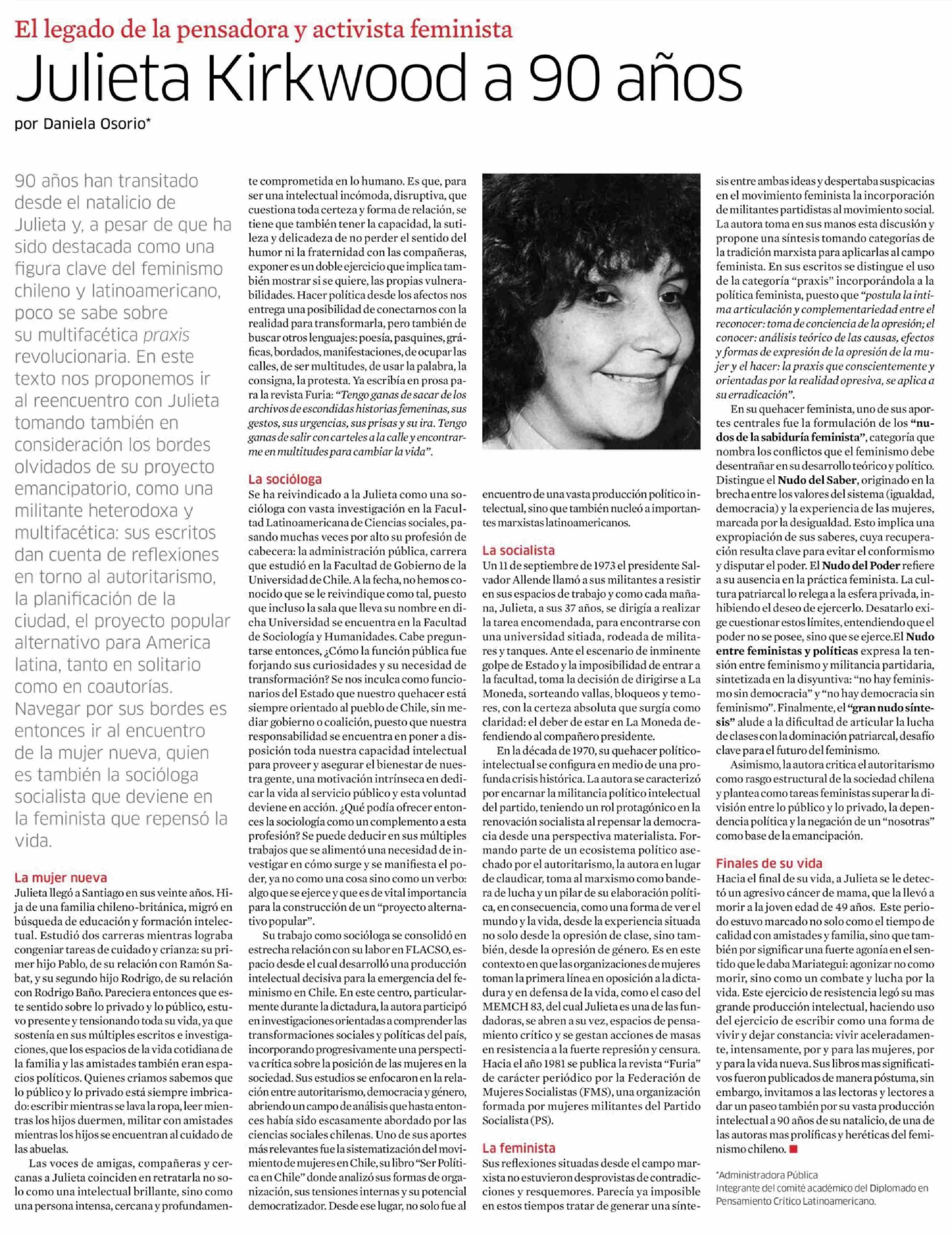Julieta Kirkwood a 90 años 07-04-2026 Le Monde Diplomatique |