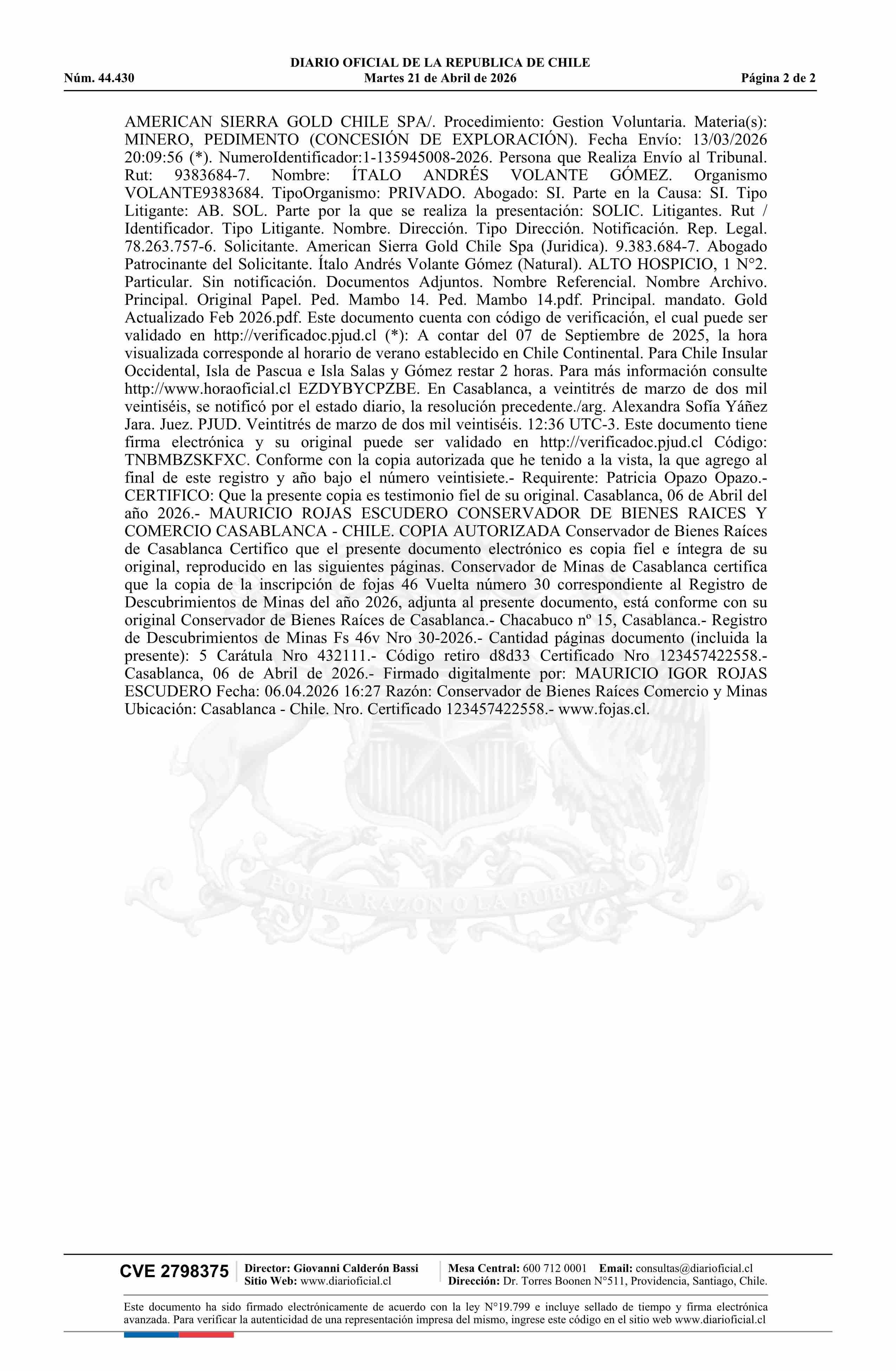 21-04-2026 DIARIO OFICIAL CHILE - BOLETÍN OFICIAL DE MINERÍA