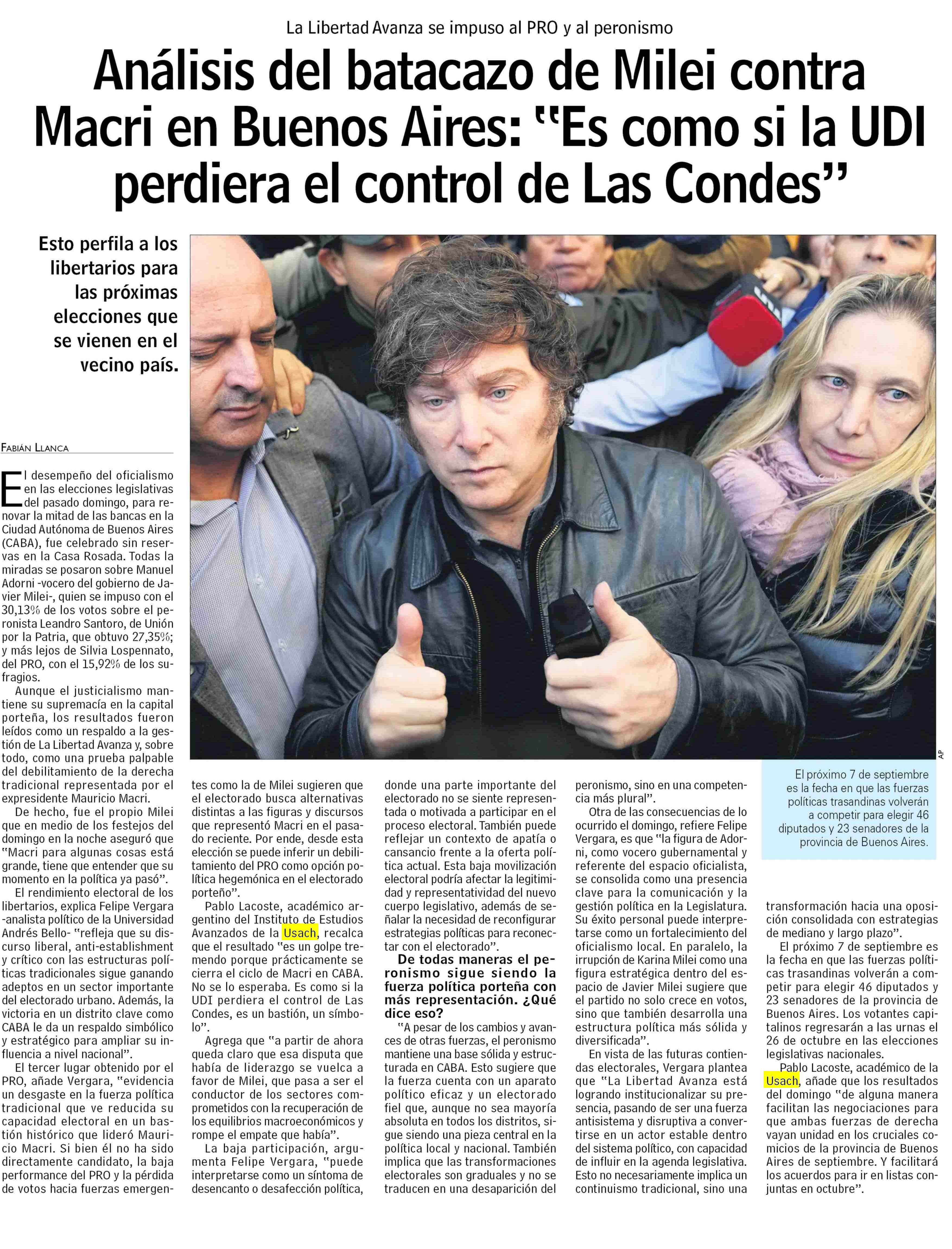 | Título: | Análisis del batacazo de Miler contra Macri en Buenos Alres: "Es como si la UDI perdiera el control de Las Condes” |