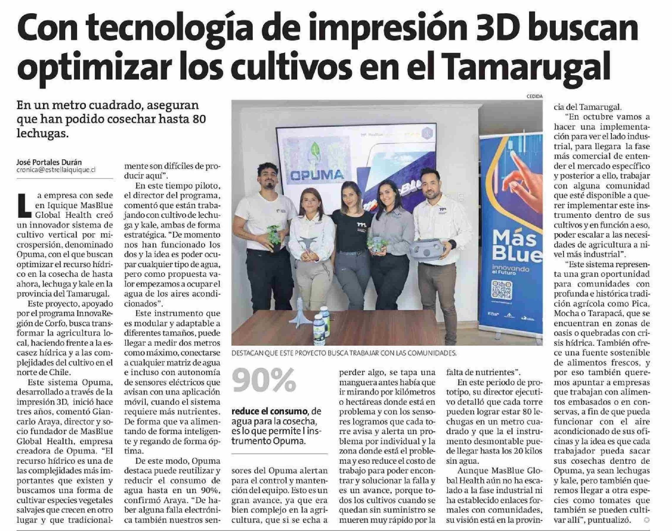 Con tecnología de impresión 3D buscan optimizar los cultivos en el Tamarugal 23-05-2025 La Estrella de Iquique |